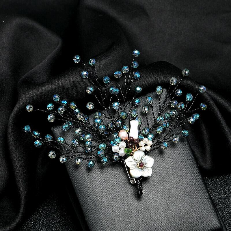 天然クリスタルシェルフラワーブローチ女性のハイエンドの雰囲気レトロエレガントなコサージュジャケットスーツピン手作りジュエリー ナチュラル フラワーデザイン shipin65381849264