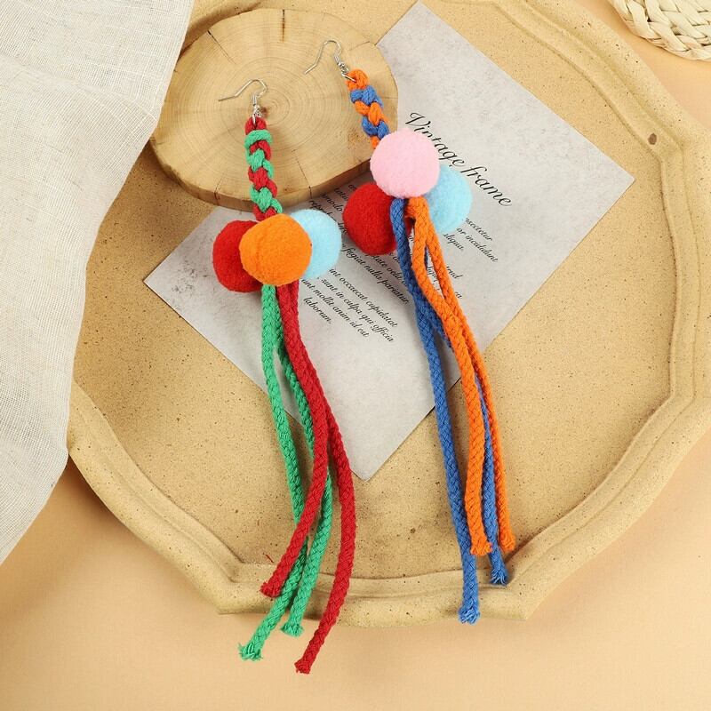 エスニックスタイルポンポンイヤリング女性のロングスタイルパーソナリティカラーファーボールイヤリングレトロボヘミアンホリデーテルイヤリング 指輪 shipin92221517598
