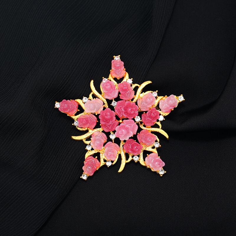 ヨーロッパとアメリカの中世スタイルの五芒星ブローチヴィンテージレトロな気質ブルーピンクグラデーションローズフラワーコサージュ女性 フラワーデザイン ビンテージ ヨーロピアン shipin21045518647