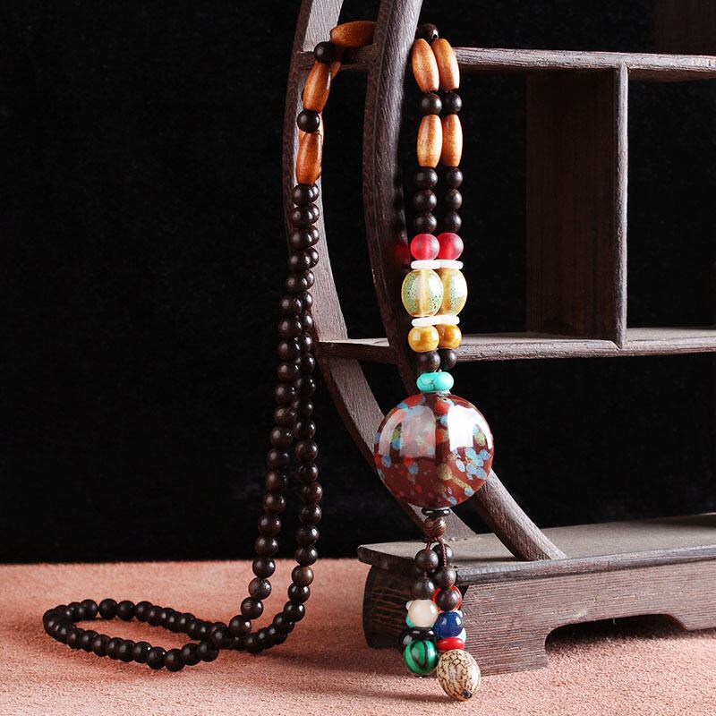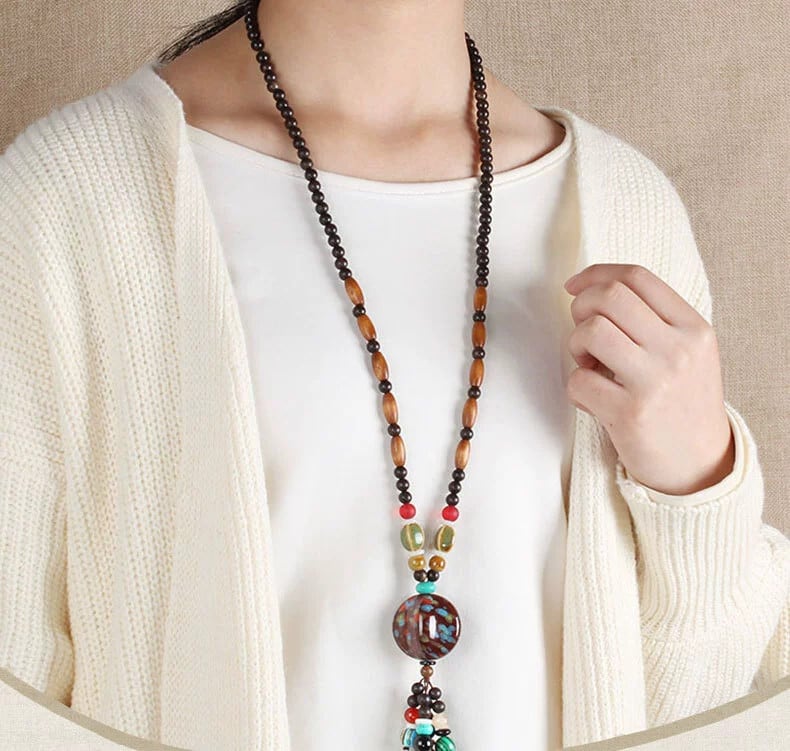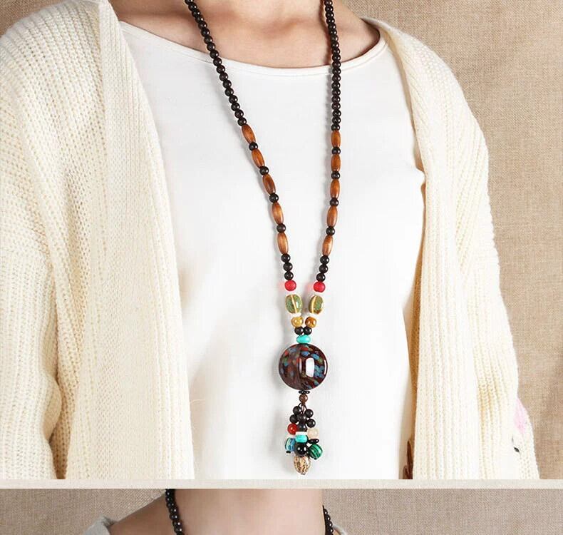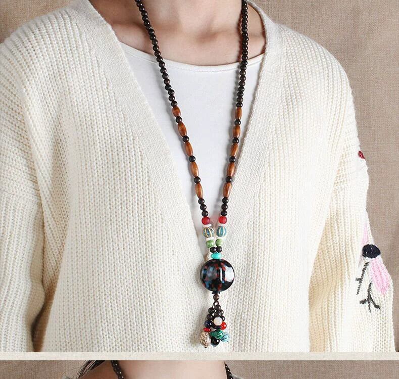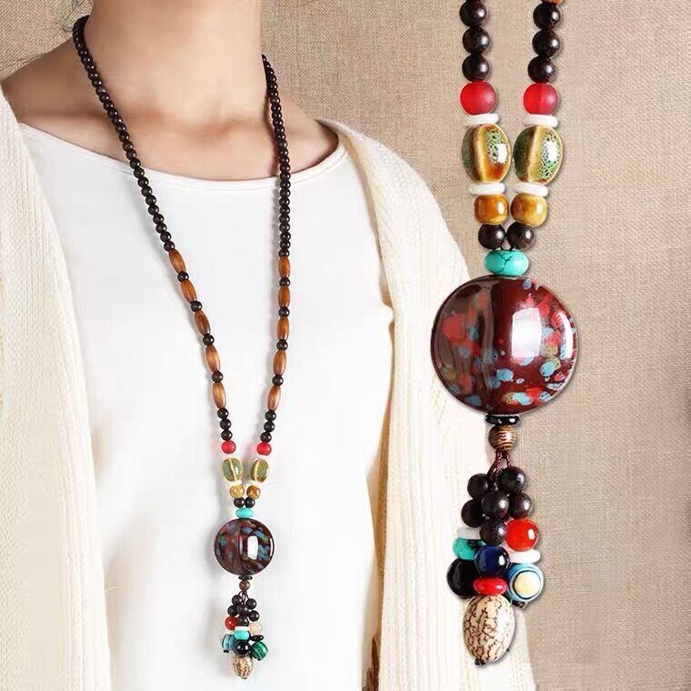 レトロエスニックセーターチェーンロングシンプルな多用途ネックレスセラミックペンダントペンダントエンド気質アクセサリー レース shipin15497757411