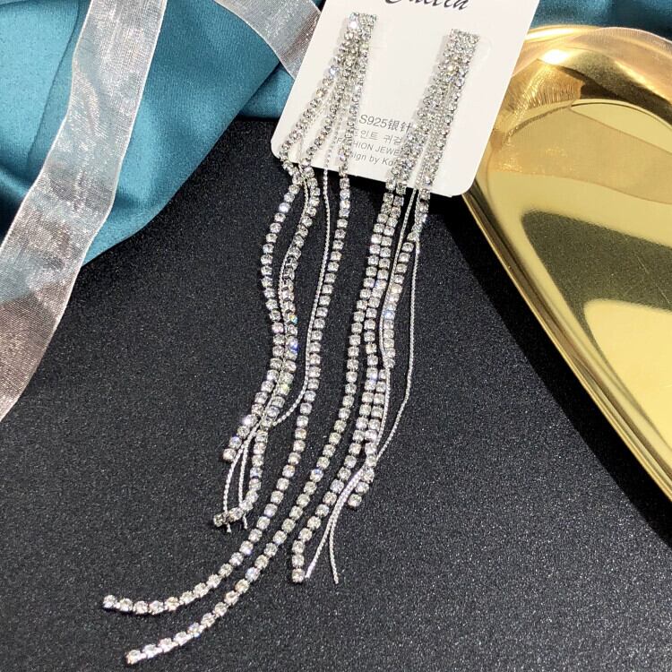 サウスのライトラグジュアリーフラッシュダイヤモンドロングテルイヤリング女性らしさ個性コールドスタイルイヤリングシンプルな雰囲気パーティーイヤリング 指輪 shipin68691319199