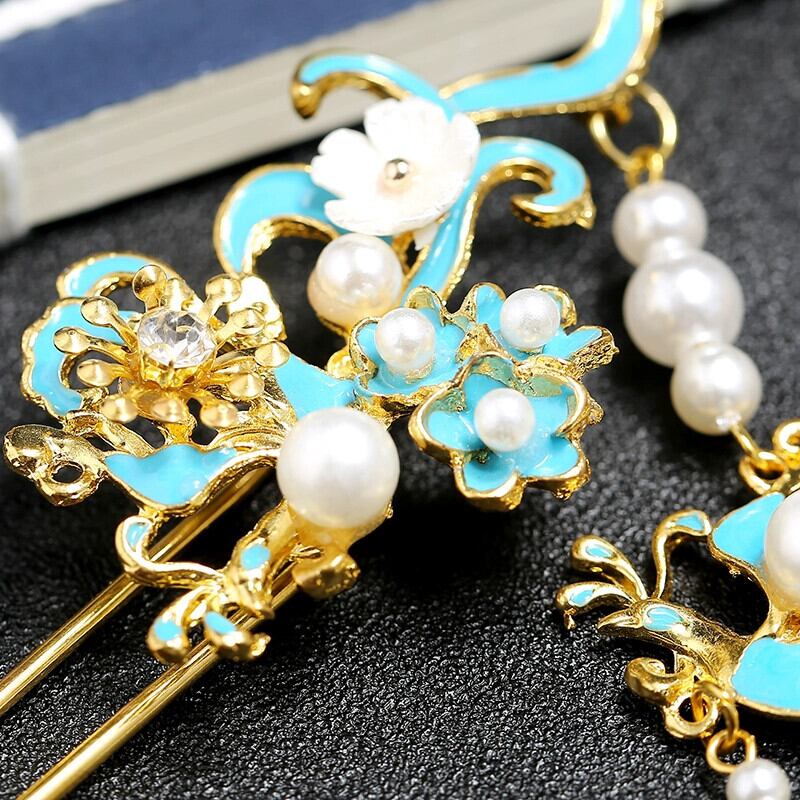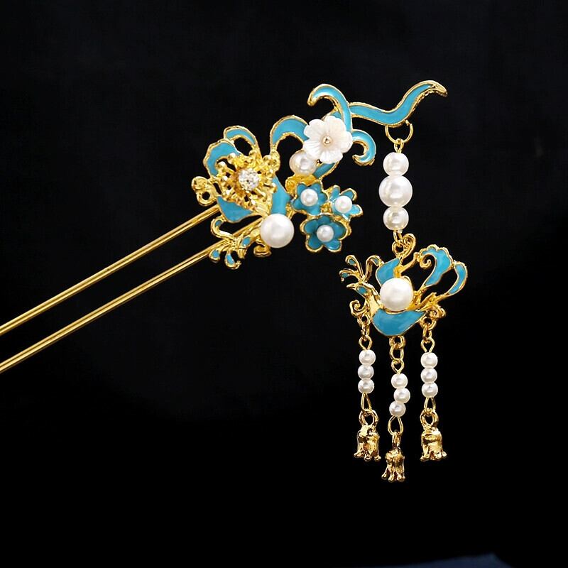 古代の風景 タイの青いヘアピン ヘアピン ヘアピン 古代衣装 ヘアアクセサリー 燃える青い紋付きヘアピン レトロテル ステップシェイク 漢服アクセサリー ブルー shipin88543080177