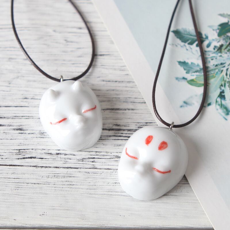 ビッグフィッシュベゴニア椿同ネックレスゴースト息子セラミックマスクペンダントロングペンダント手作りカップルジュエリー周辺 レース shipin8178253681