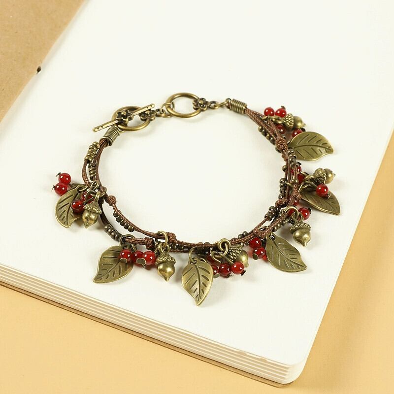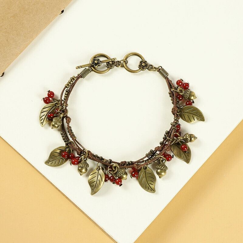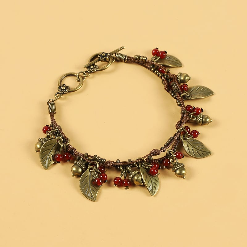 手織りレトロエスニックスタイルチェリーブレスレット赤瑪瑙ペンダント文学ブレスレットセン部門ニッチブレスレット レッド shipin26283876044