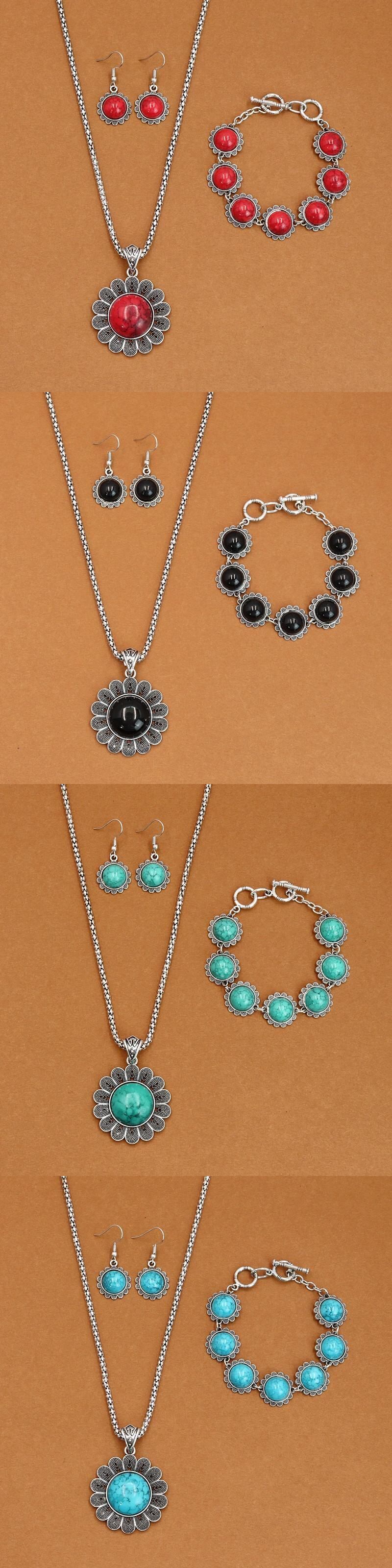 スリーピース スーツ ヨーロッパとアメリカのナショナル スタイル ボヘミアン ターコイズ ネックレス女性のレトロな個性のイヤリング ブレスレット ホリデー アクセサリー レース 指輪 ヨーロピアン shipin801303113