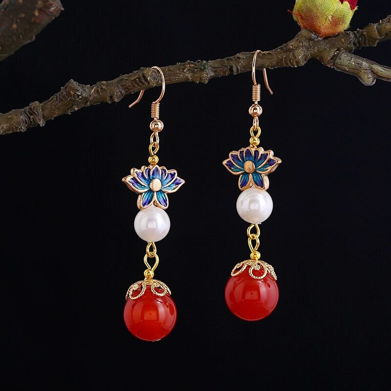 中国風クリカルロングイヤリング古代スタイル瑪瑙イヤリング森文学気質レトロ韓服チャイナドレス女性 指輪 shipin61592539571