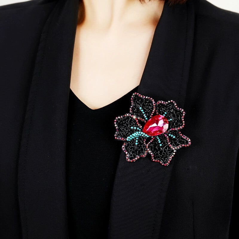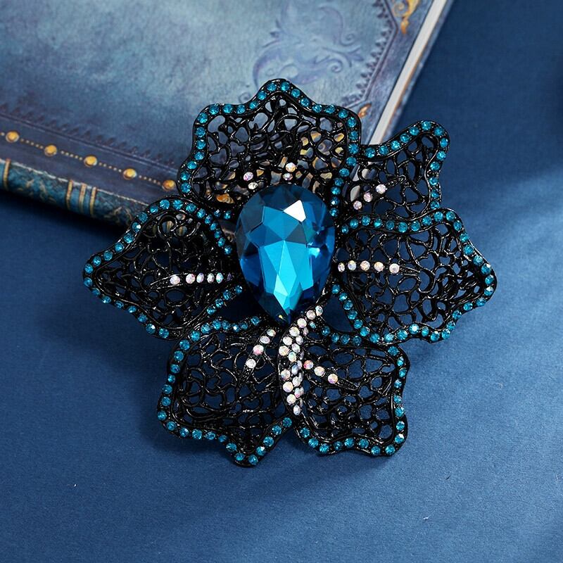 ニッチレトロ誇張された大きな花のクリスタルブローチ人格雰囲気ローズコサージュブローチアクセサリー フラワーデザイン shipin44799895194