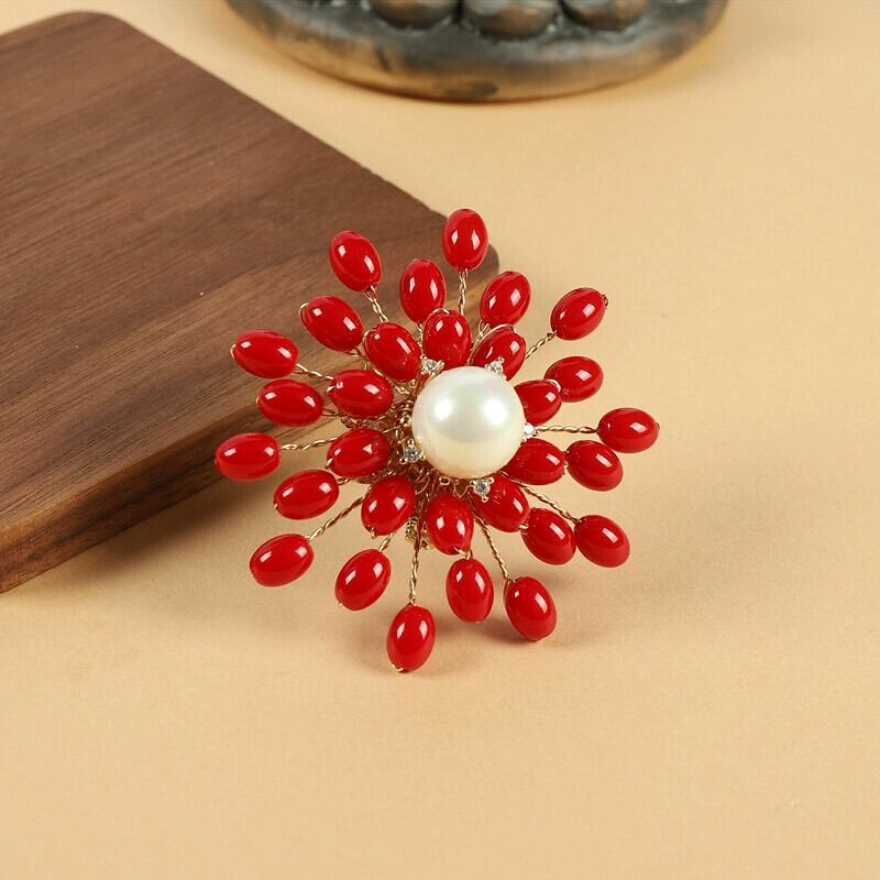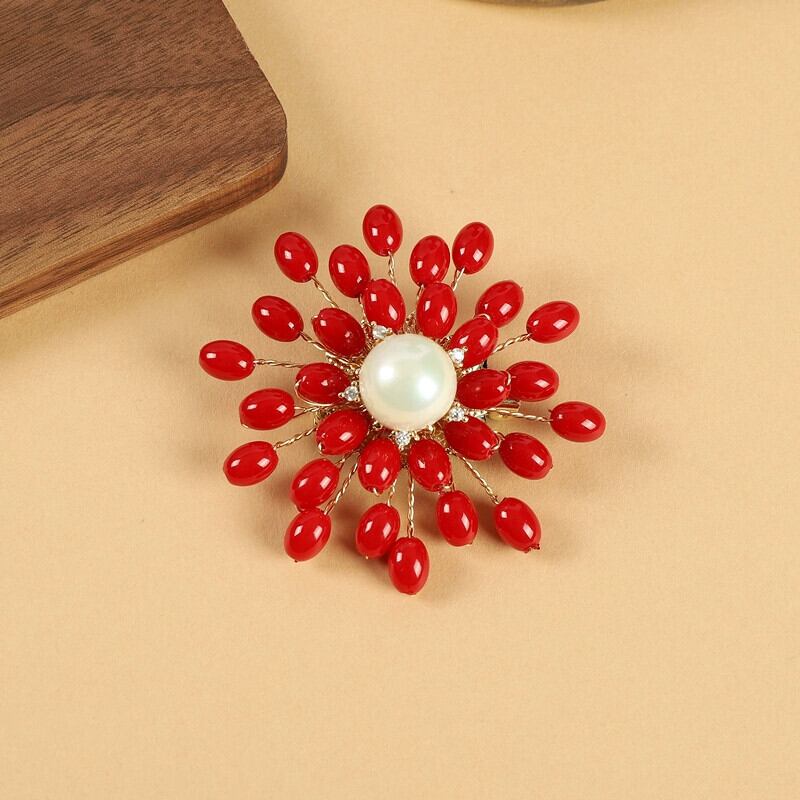 レトロ赤織りビーズフラワーブローチファッションエスニックスタイルニッチ人格カーディガンハイエンド気質ブローチアクセサリー女性 レッド フラワーデザイン shipin81832859601
