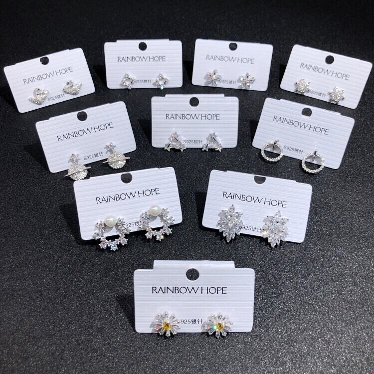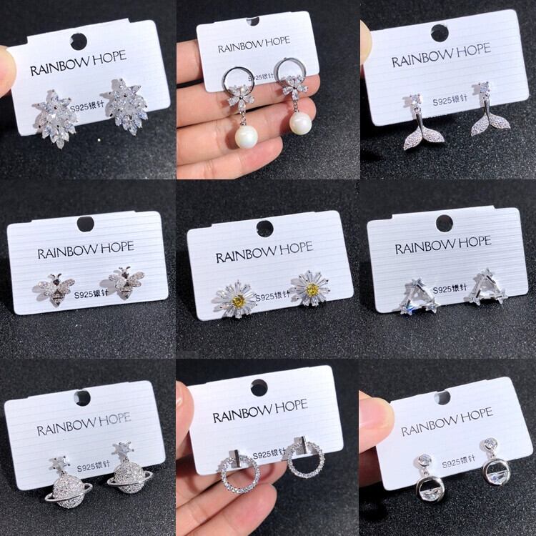 シンプルな S925 シルバー針ジルコンクリスタルイヤリング女性らしさの多彩なイヤリング雪の花の光の高級ダイヤモンドイヤリング 指輪 フラワーデザイン 銀 shipin49481168964