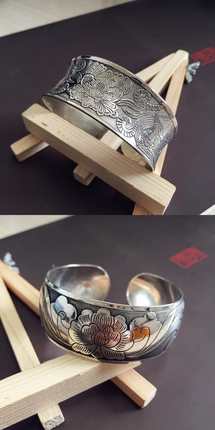 レトロなエスニックスタイルのシルバーブレスレットヨーロッパとアメリカの彫刻開口部広いブレスレット個々のミャオ族シルバーやって古いアンティークジュエリー 銀 ヨーロピアン shipin97796816368