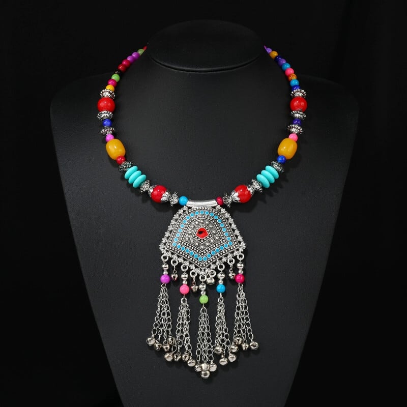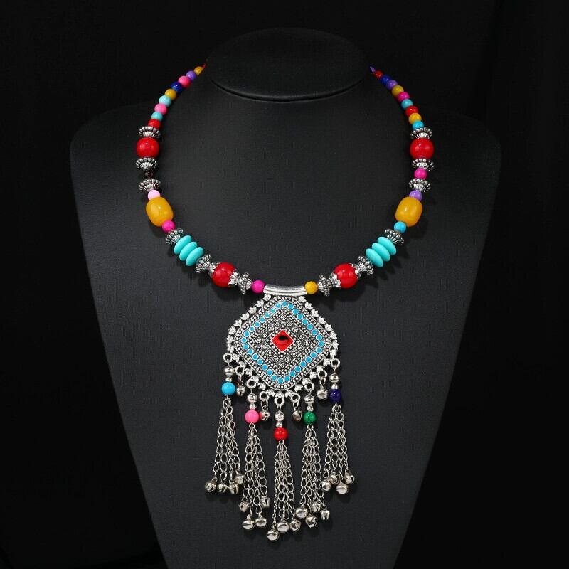 レトロエスニックスタイルチベットネックレスベルテルカラービーズネックレス雲南旅行セーターチェーンアクセサリー レース shipin24651877653