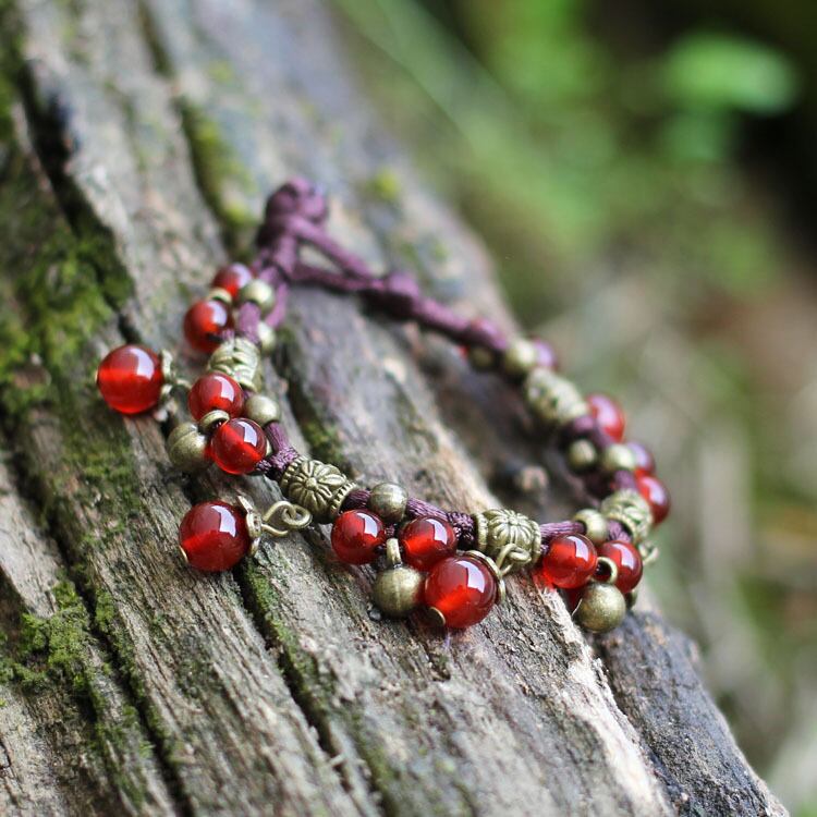 森エスニックスタイル織り瑪瑙ブレスレットレディースレトロボヘミアンフルーツベルテルペンダントブレスレット shipin55718968557