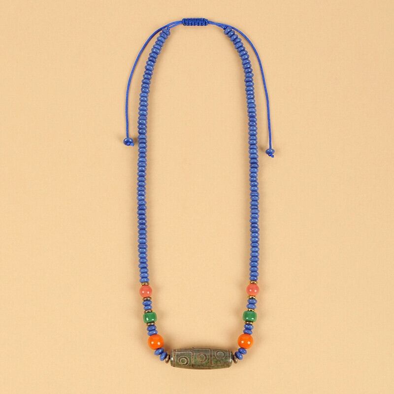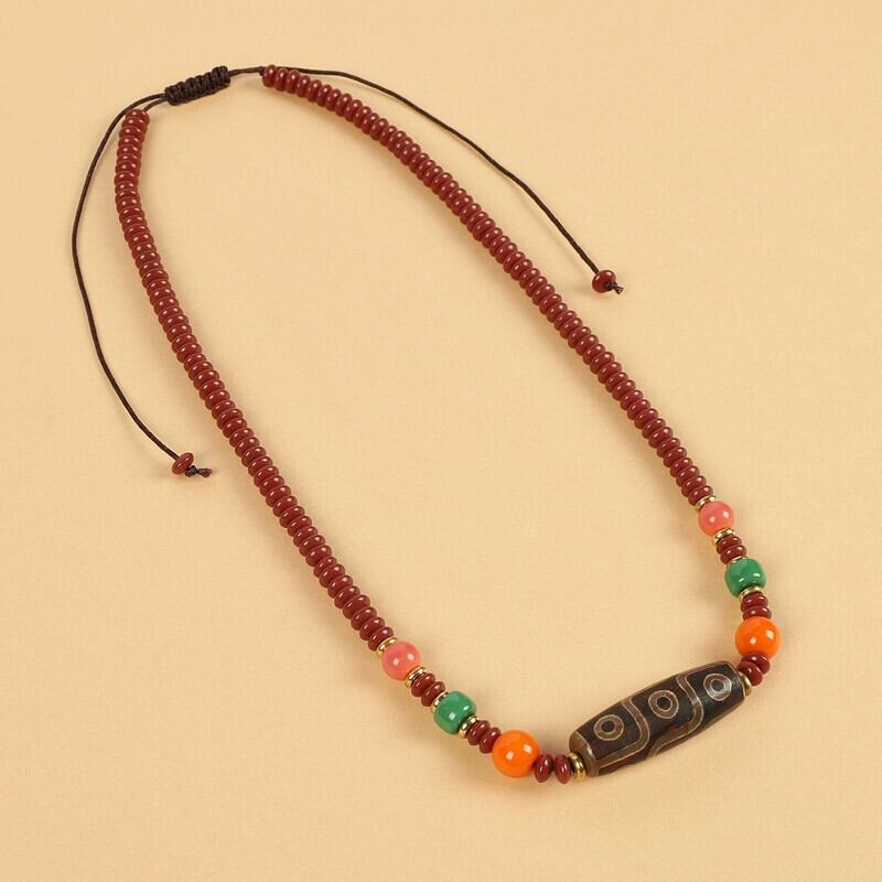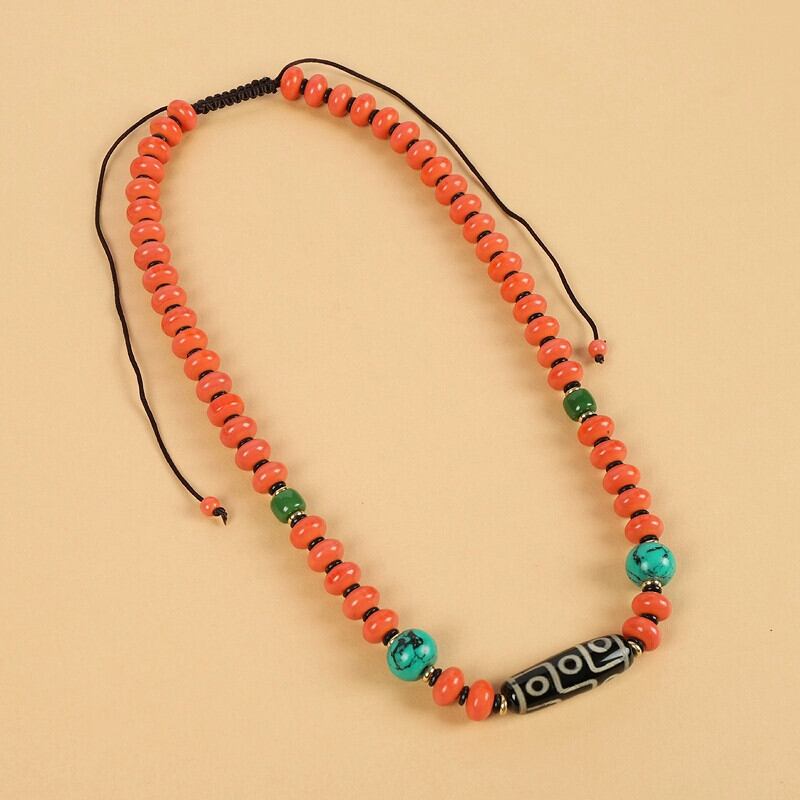 チベット Dzi ビーズ瑪瑙サンゴネックレス チベット男性と女性のレトロなロングエスニックスタイル鎖骨チェーンチベットアクセサリー レース shipin94165291963