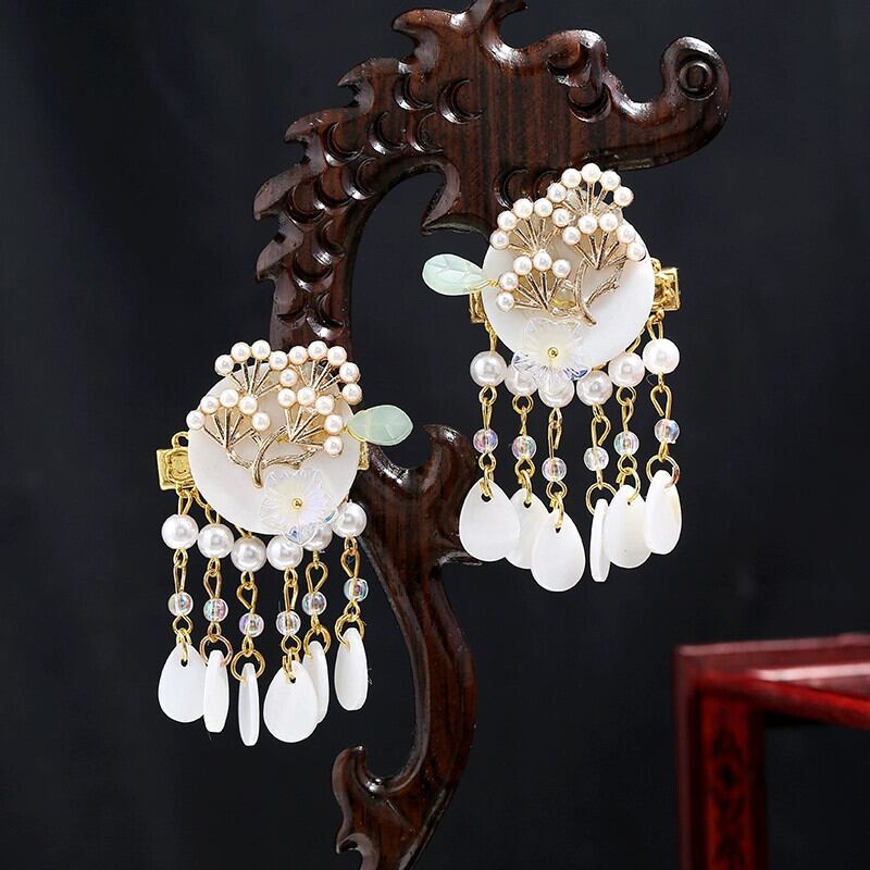スーパー妖精古代スタイル韓服ヘアピン頭飾りシェルフラワーテルヘアピン小さな新鮮な女性オールマッチペアクリップ古代の装飾 フラワーデザイン shipin9028934810
