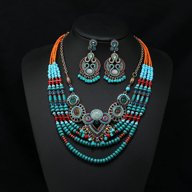 ヨーロッパとアメリカのレトロエキゾチックなボヘミアンネックレスイヤリングセットチベットエスニックトラベルポーペンダントehead帽子 レース 指輪 ヨーロピアン shipin40487790772