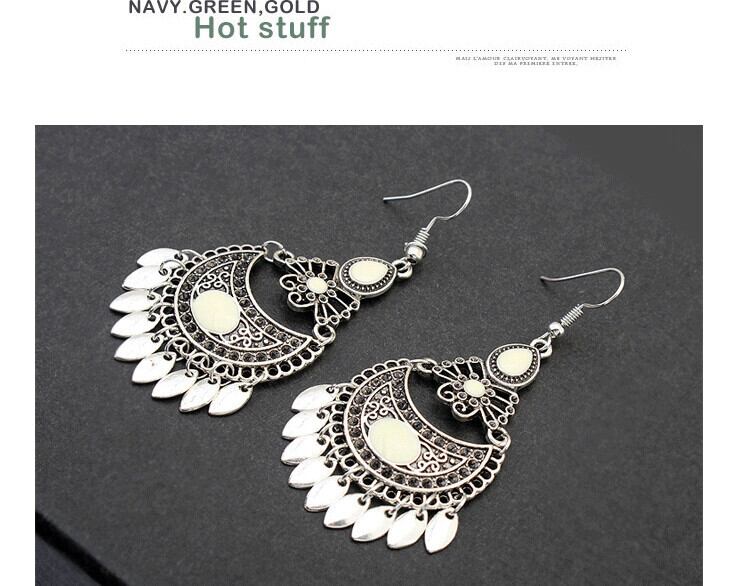 ヨーロッパとアメリカのレトロなハイエンド古代シルバーファッション三日月イヤリングエスニック風ドロップ釉薬ロングテルイヤリング女性の耳のアクセサリー 指輪 銀 ヨーロピアン shipin81601984058