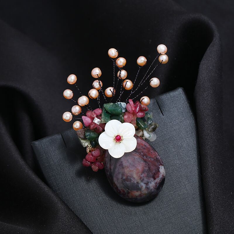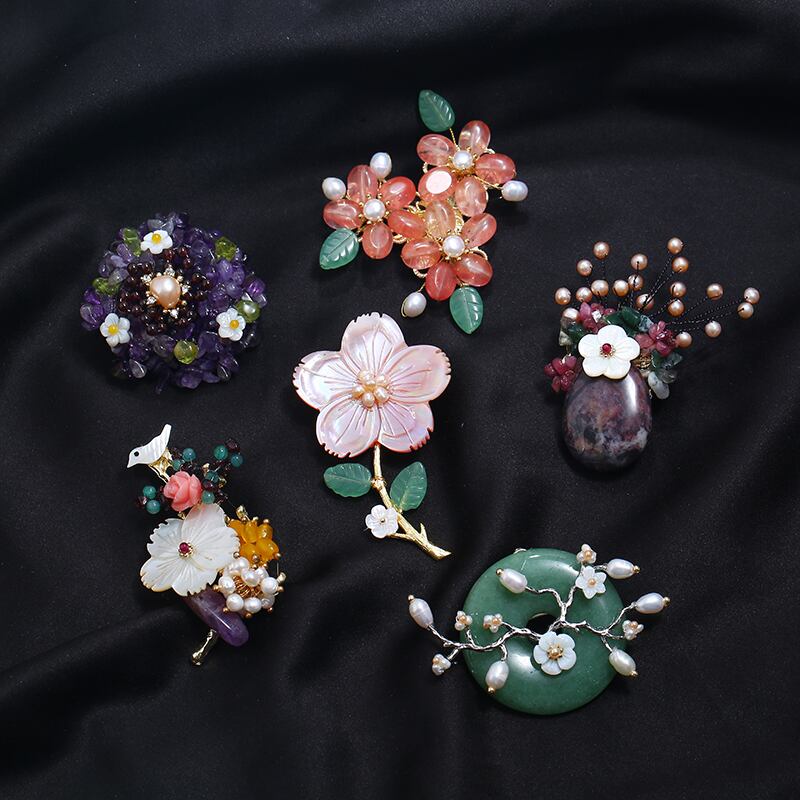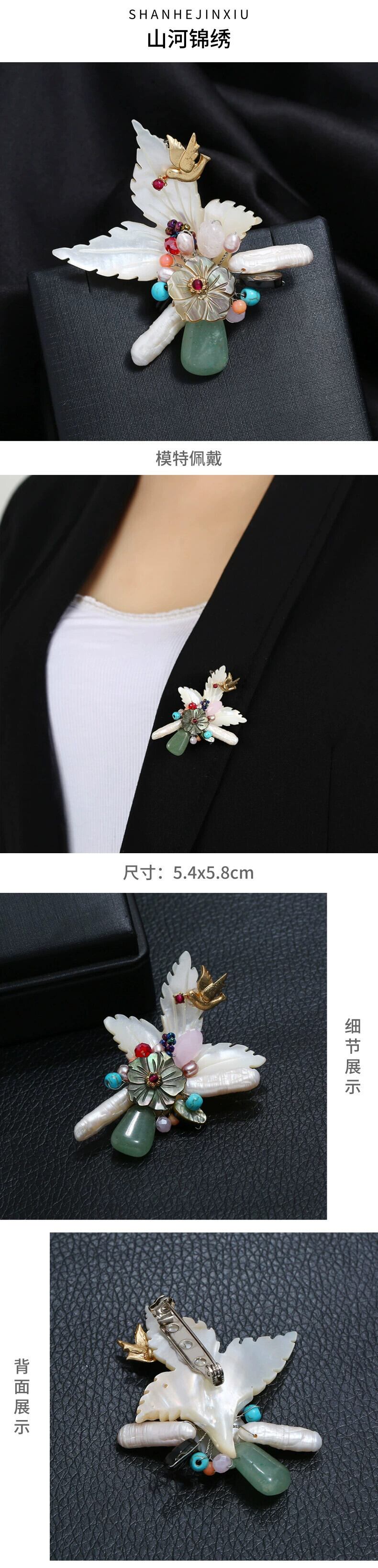 重い手作り天然クリスタルシェルコサージュ女性の豪華な雰囲気レトロエレガントなブローチコートコートアクセサリー ナチュラル shipin92565012081