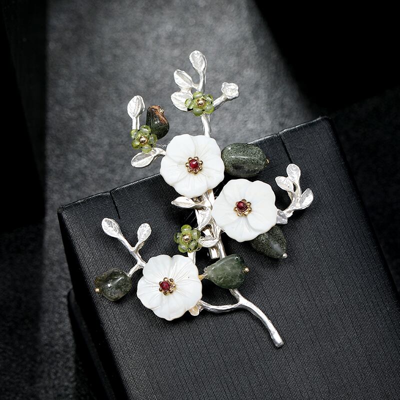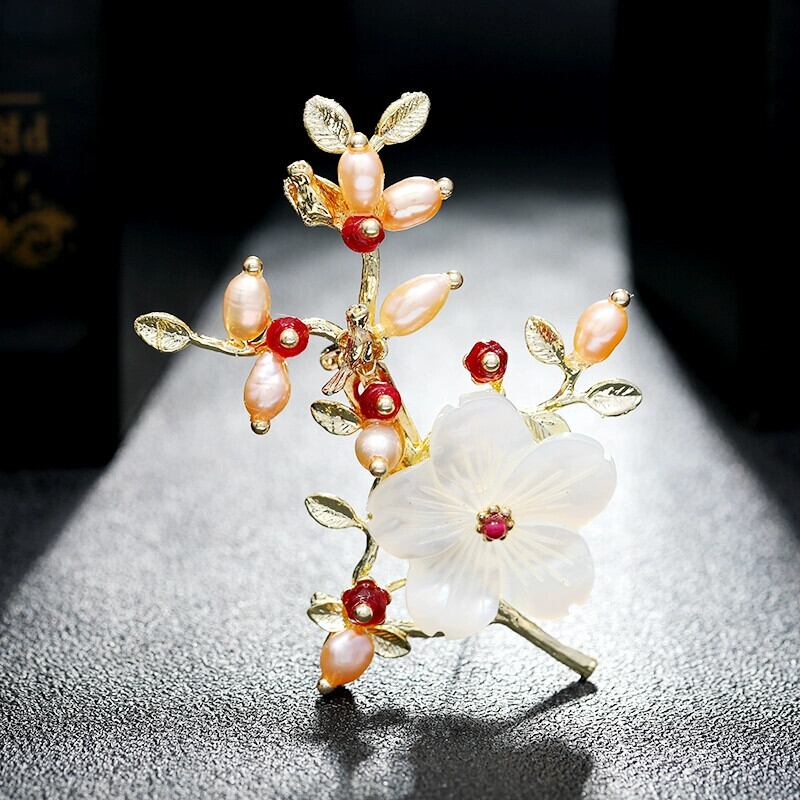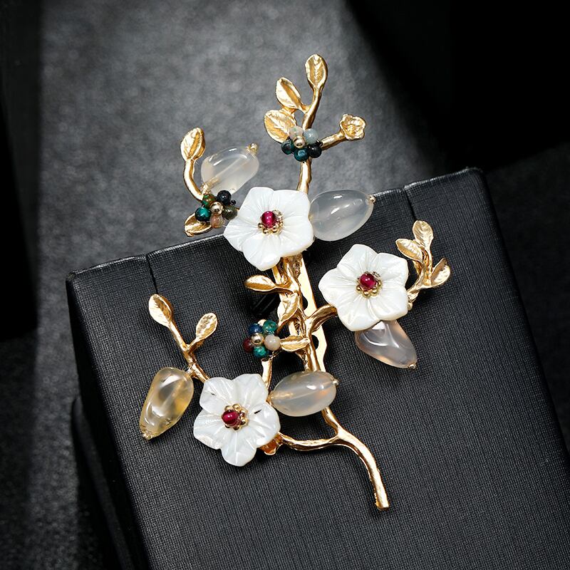 中国風の天然クリスタルシェルブローチ気質文学多用途花ブローチ-グレードコサージュ ナチュラル フラワーデザイン shipin97581843178