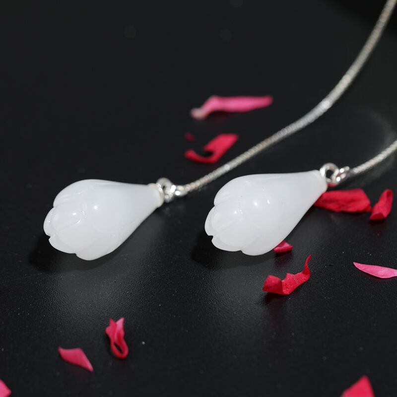 アンティークイヤリング gl ホワイトマグノリアの花ロング耳ライン s925 スターリングシルバーイヤリングイヤリングクリカル気質耳ジュエリー女性 指輪 フラワーデザイン 銀 shipin90551462298