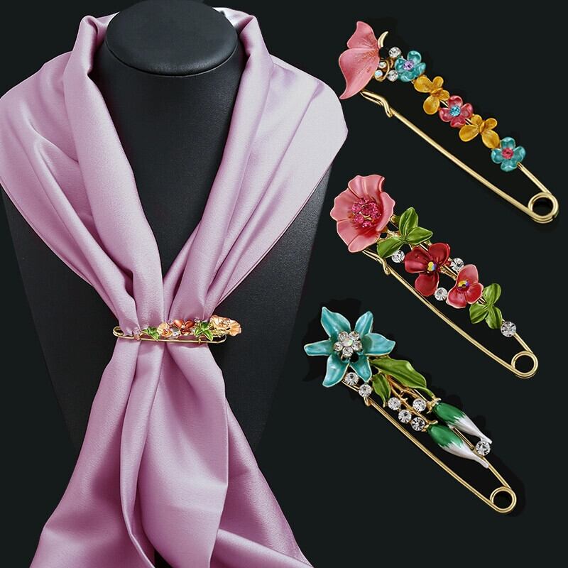ヨーロッパとアメリカの絵画シルクスカーフバックルブローチ女性固定服カーディガンピンチューリップの花の気質百マッチングアクセサリー レッド フラワーデザイン ヨーロピアン shipin26055248704