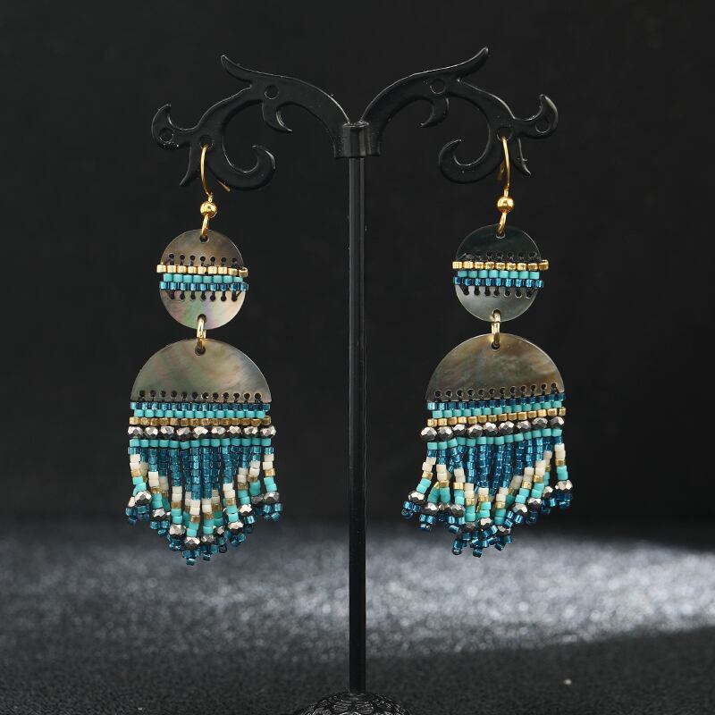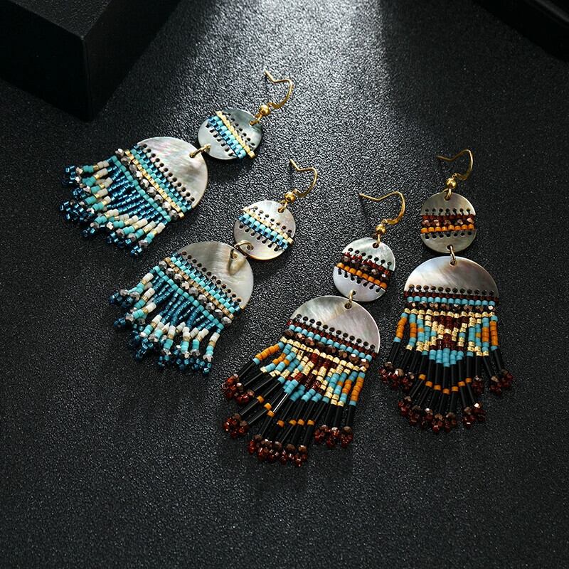 黒蝶シェル織りライスビーズテルイヤリングニッチヨーロッパとアメリカのレトロボヘミアン気質イヤリング ブラック 指輪 ヨーロピアン shipin15077619607
