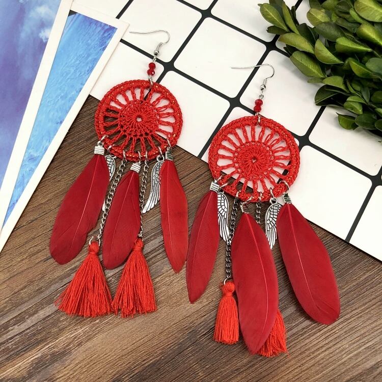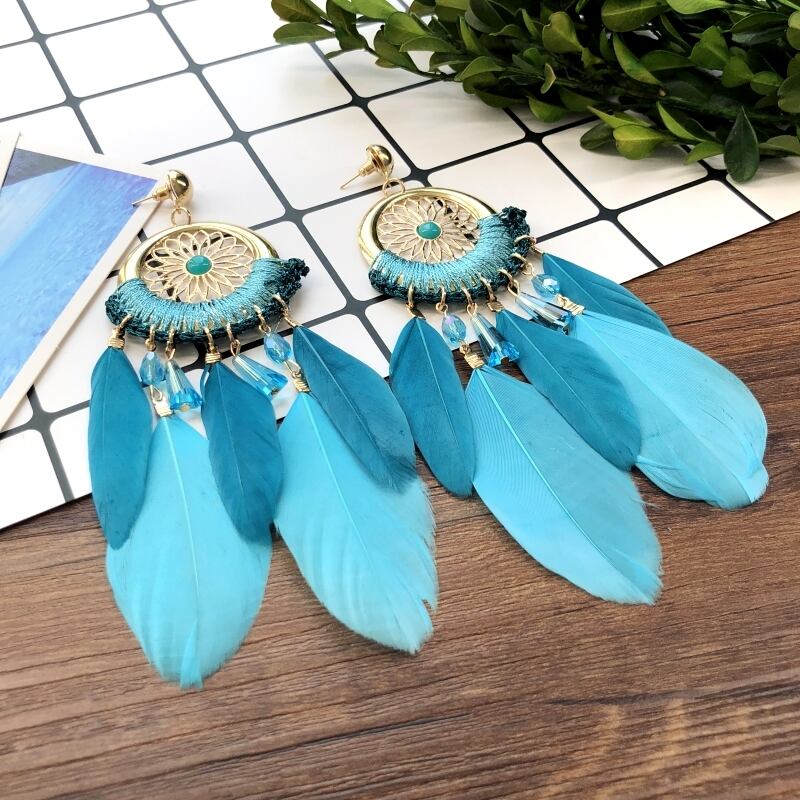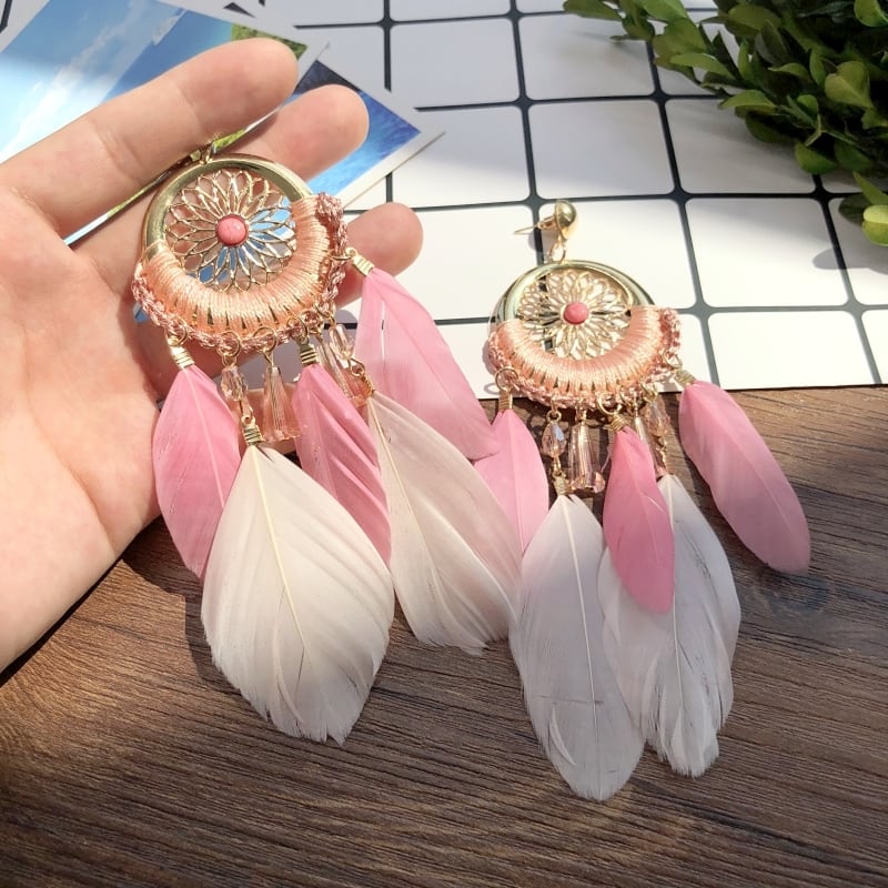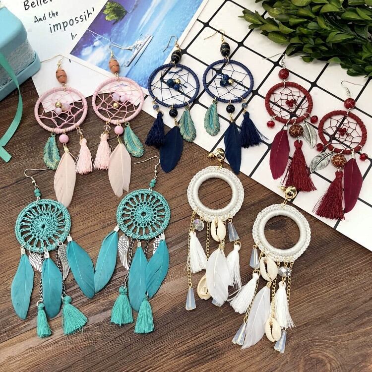 ヨーロッパと気質のドリームキャッチャーエレメントイヤリングボヘミアシーサイドバケーションフェザーテルイヤリング多用途イヤリング 指輪 ヨーロピアン shipin9725751134