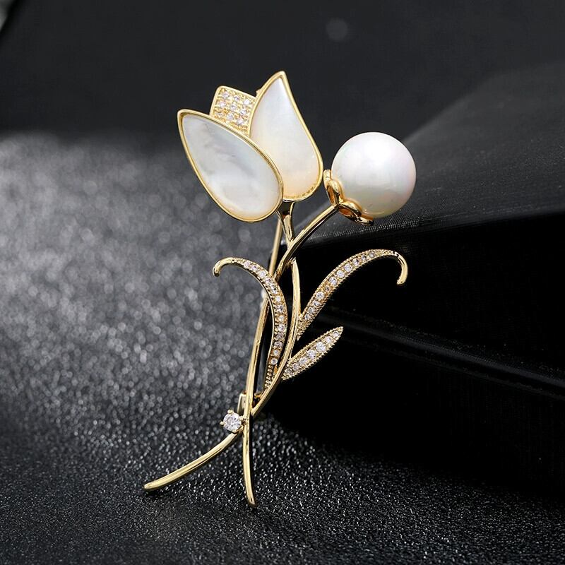 天然シェルチューリップフラワーブローチ女性のハイエンドエレガントな気質高級コサージュコートスーツピンアクセサリー ナチュラル フラワーデザイン shipin20450291373