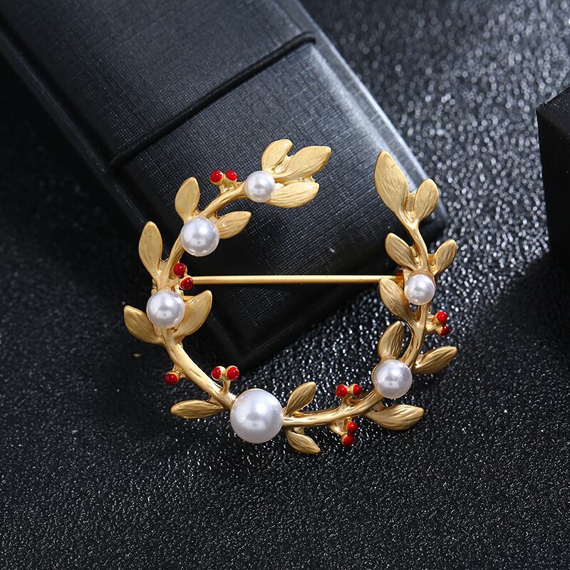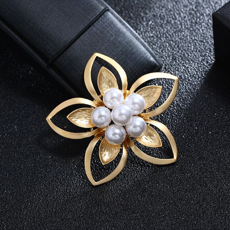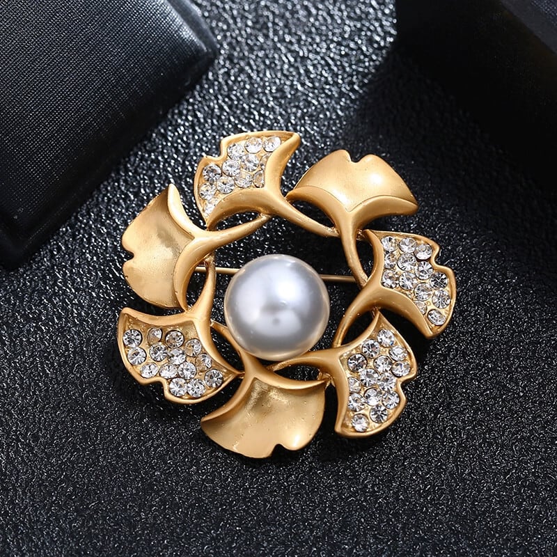 高級気質ダムゴールドブローチ女性森植物パールフラワーブローチスーツシンプルなコサージュアクセサリー 真珠 フラワーデザイン shipin49050151496