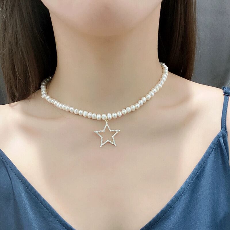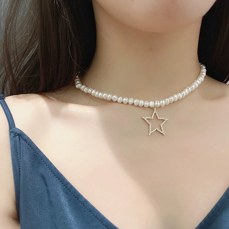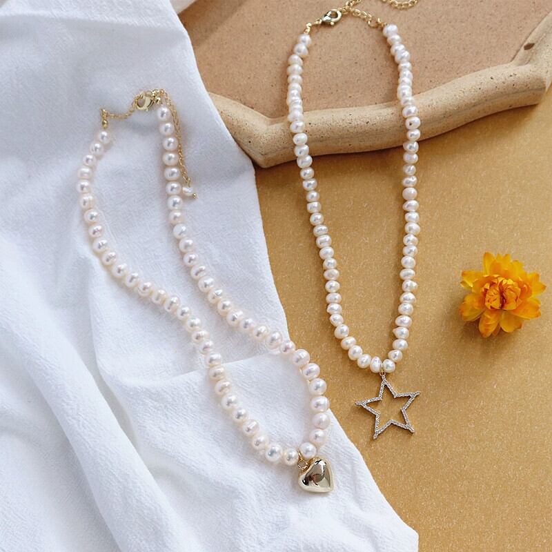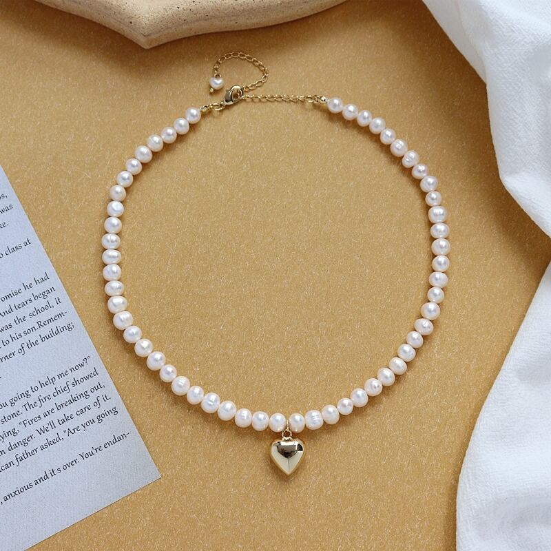 ニッチレトロフレンチ淡水パールピーチハートネックレス多用途気質鎖骨チェーンシンプルなネックレス レース 真珠 shipin40118174430