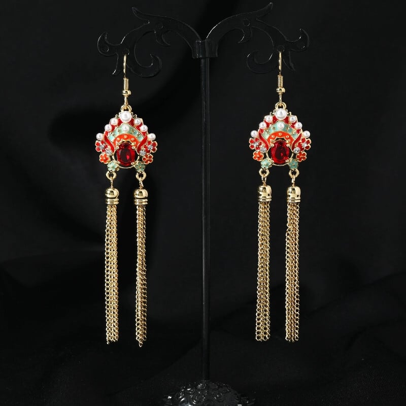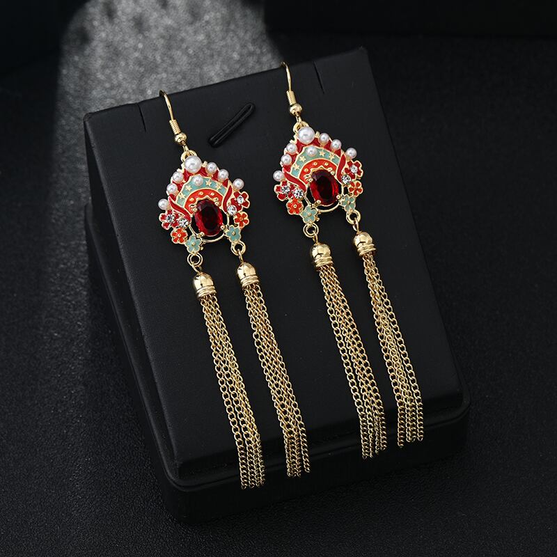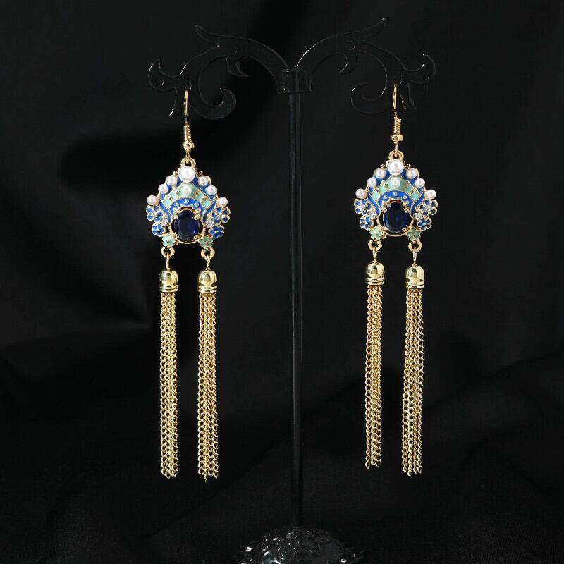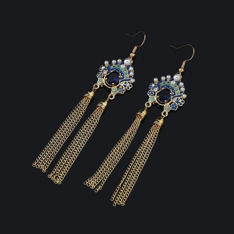 Dao Ma Dan クリスタルイヤリング女性の中国風の気質ロングテルフェイスイヤリング - エンドイヤリング 指輪 shipin83933637751