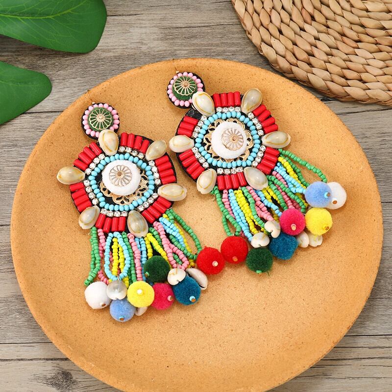 ヨーロッパとアメリカの誇張カラーポンポンイヤリング女性人格ロングセクションテルレトロボヘミアンエスニックスタイルニッチイヤリング 指輪 ヨーロピアン shipin67888369849