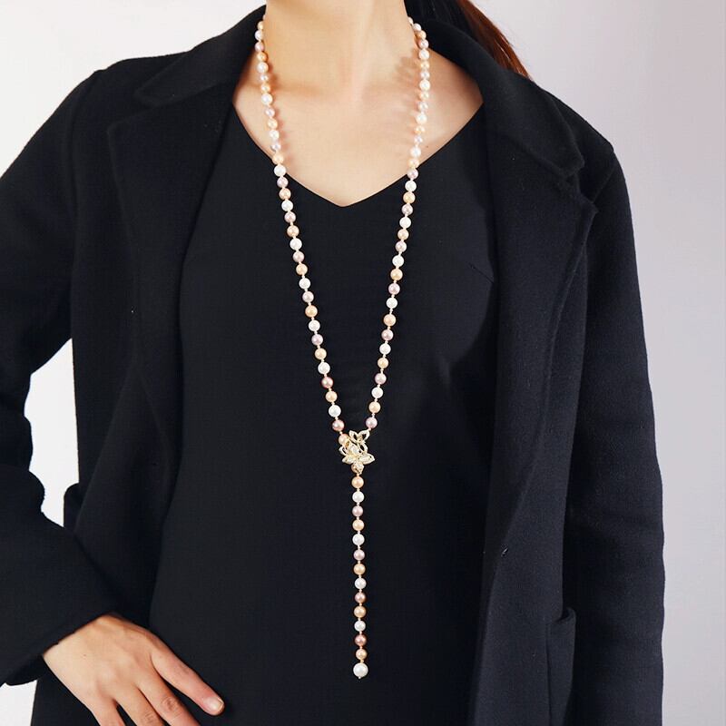 -グレードの大気パールネックレス天然シェルエレガントな気質多層着用秋と冬レッドオールマッチセーターチェーン女性 レース オータム 秋物 ウィンター 冬物 ナチュラル 真珠 shipin2525486745