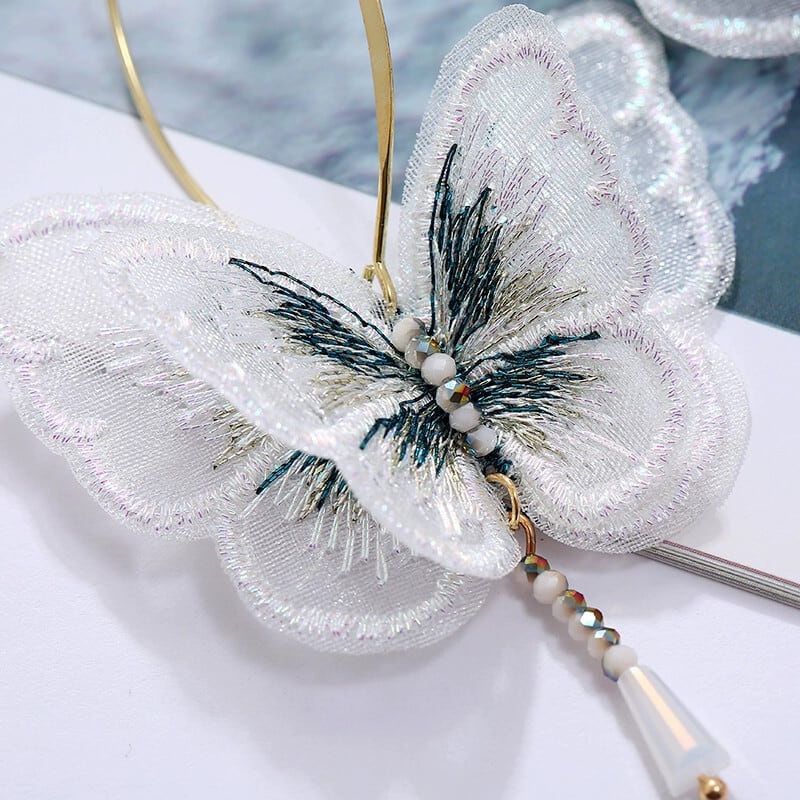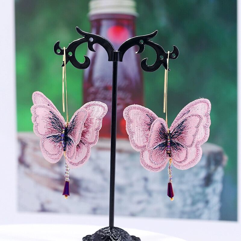 2022 トレンディな刺繍バタフライエンドイヤリング森気質イヤリングスタッドイヤリングロングイヤリング レッド 指輪 shipin86847655122
