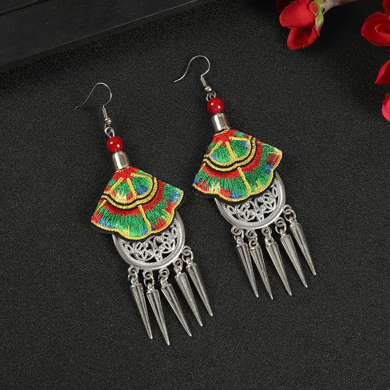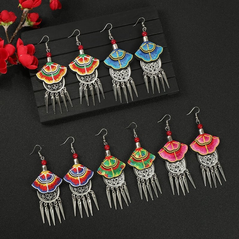 雲南エスニックスタイル刺繍ファブリックイヤリングロングセクション電話人格イヤリング中国のレトロミャオ族シルバーイヤリング女性 指輪 銀 shipin42904855766