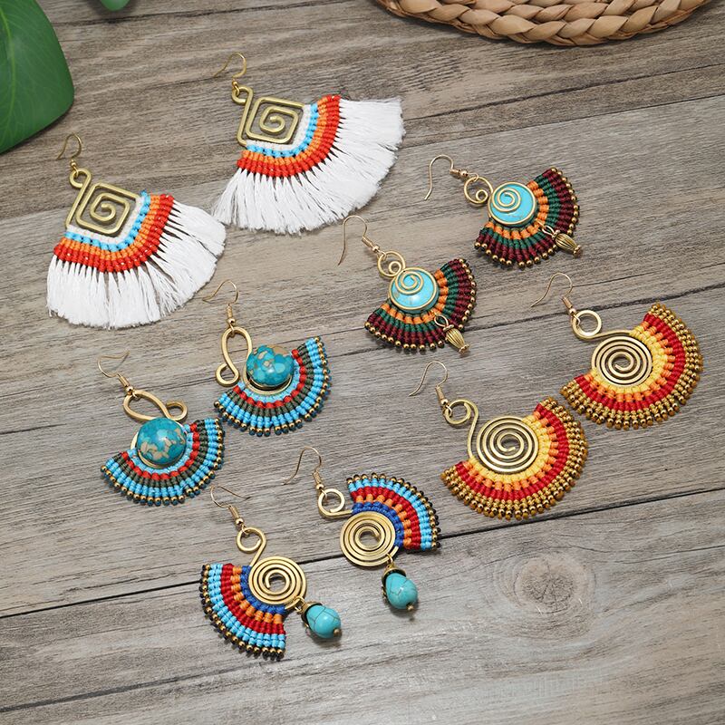 ニッチデザインヨーロッパとアメリカのエスニックスタイルの編組イヤリングボヘミアンレトロホリデースタイルの個性気質手作りイヤリング 指輪 ヨーロピアン shipin9830472994