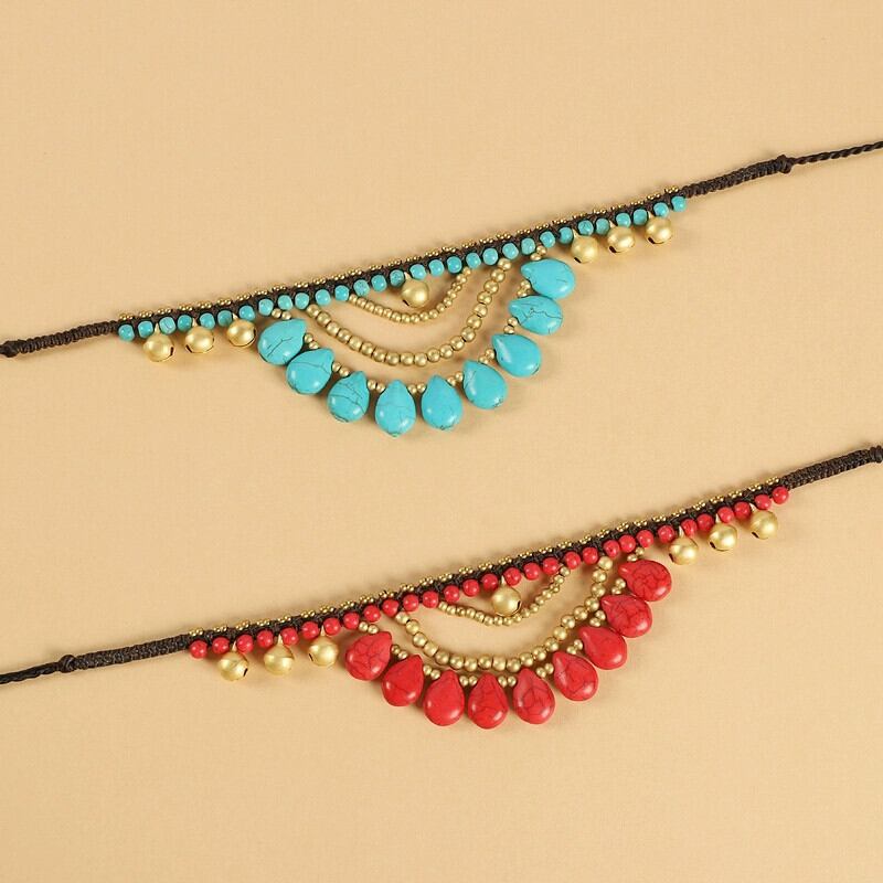 デザインエスニックスタイル多層ウォータードロップehead装飾眉毛センターペンダント織りレトロエキゾチックスタイルeheadチェーンヘアロープ頭飾り shipin79122137286