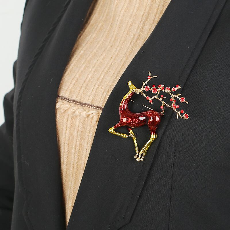 国民風ニホンジカ鹿ブローチ女性動物クリエイティブ誇張ジェンダーピンコサージュ気質スーツコートアクセサリー shipin81190959199