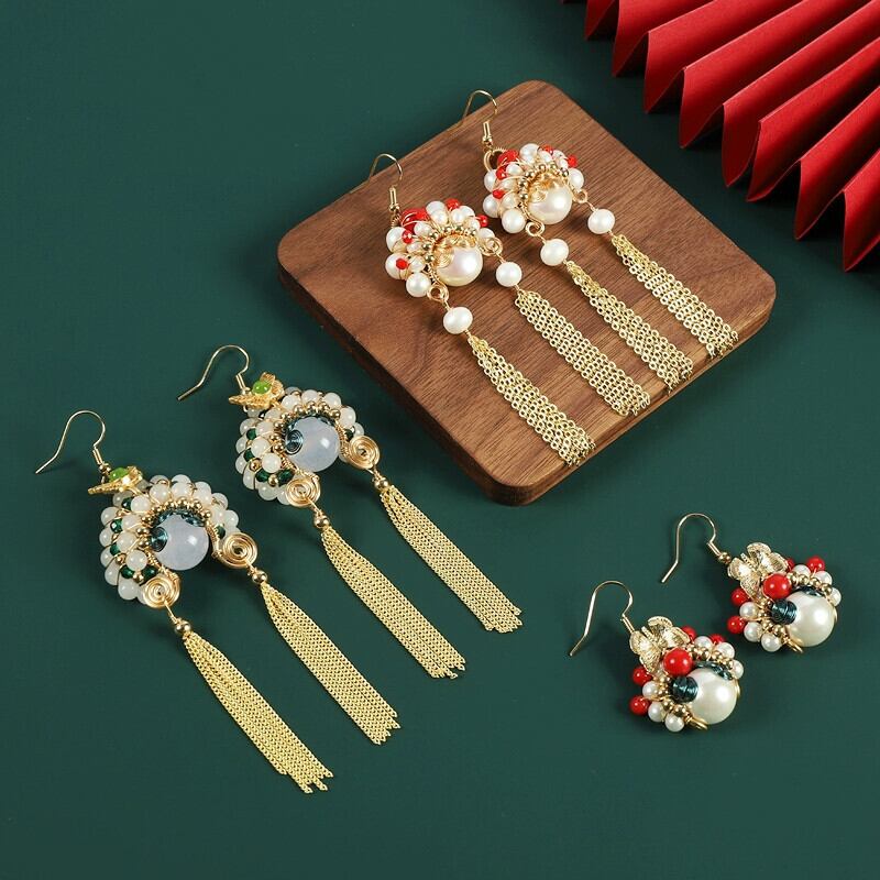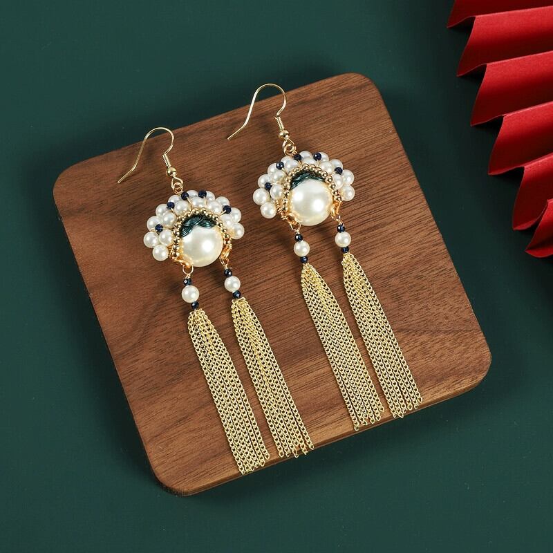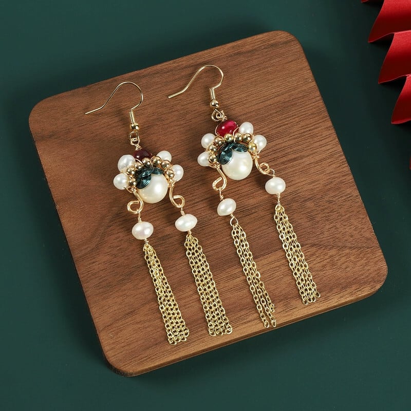 中国風ナイフ馬丹フェイスブック電話イヤリング天然真珠感覚気質ロングセクション小さな国家トレンドイヤリング女性 ナチュラル パール 指輪 shipin51199691511