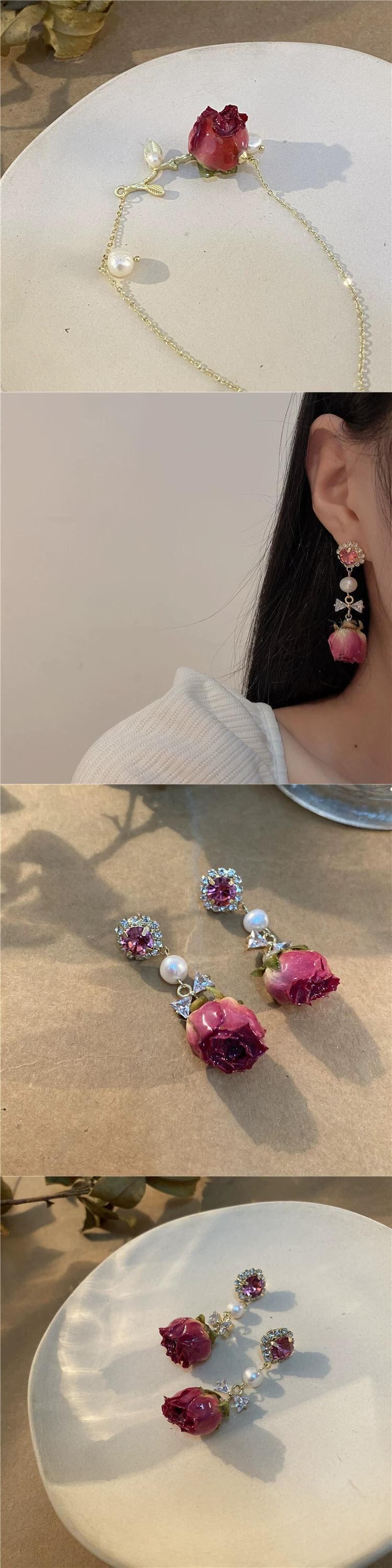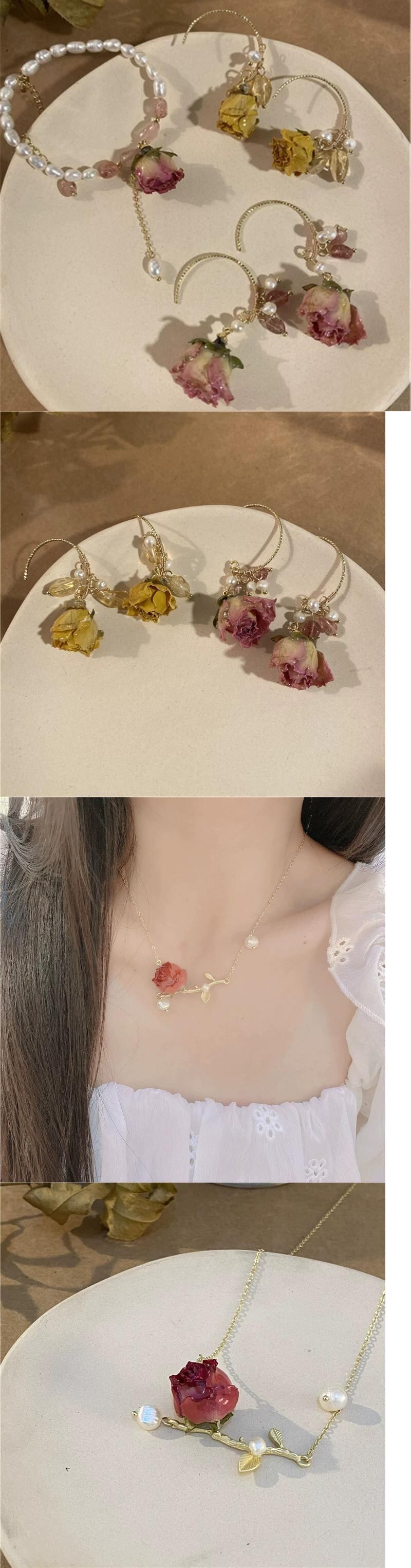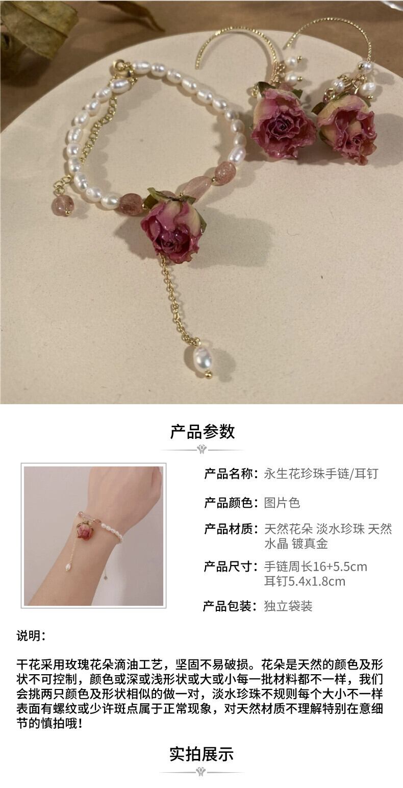 インエレガントな気質永遠の花のイヤリングイヤリングレトロエストローズフラワー淡水真珠のブレスレットジュエリー女性 パール 指輪 フラワーデザイン shipin3524915742