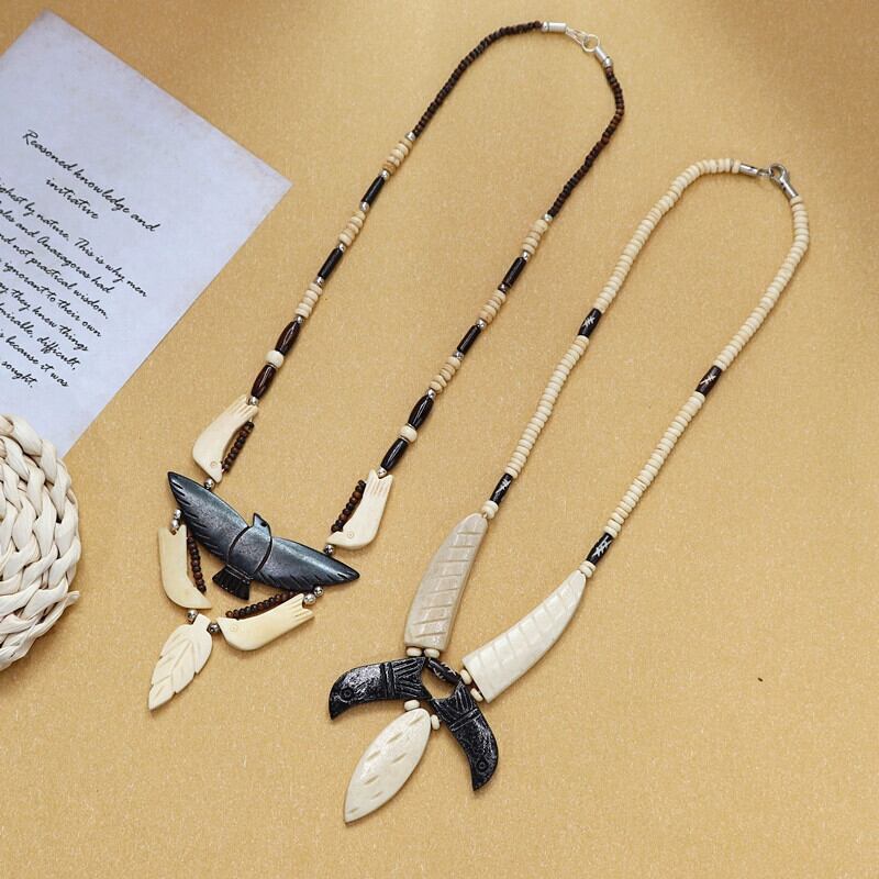 レトロなインドスタイルのヤクの骨手作りショートネックレス男性と女性のオリジナル個性エスニックスタイルチベットパーマンスジュエリー レース shipin28083353469