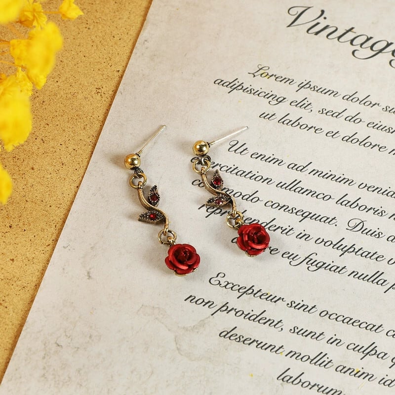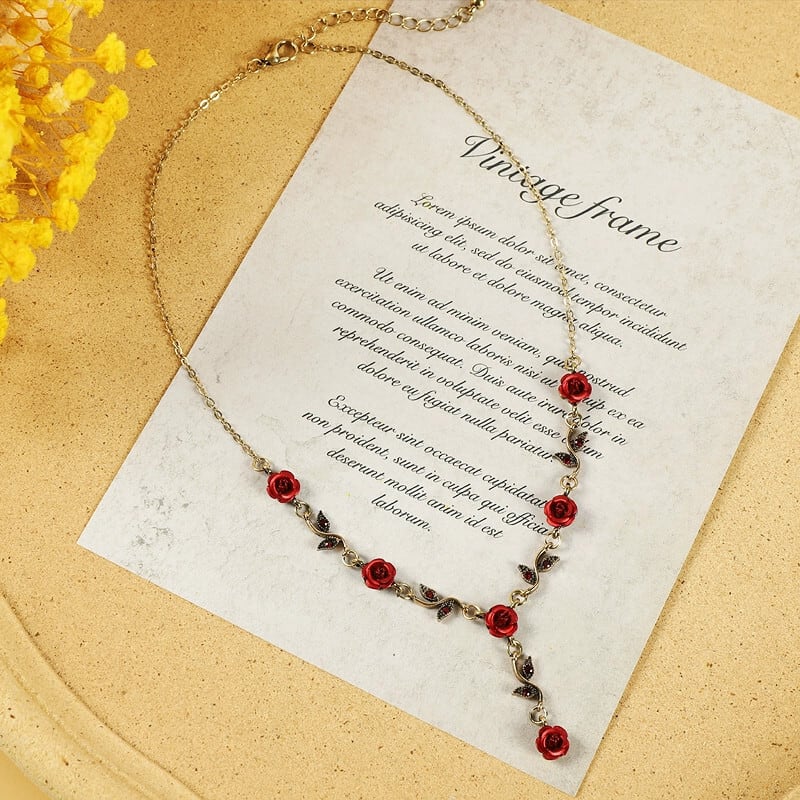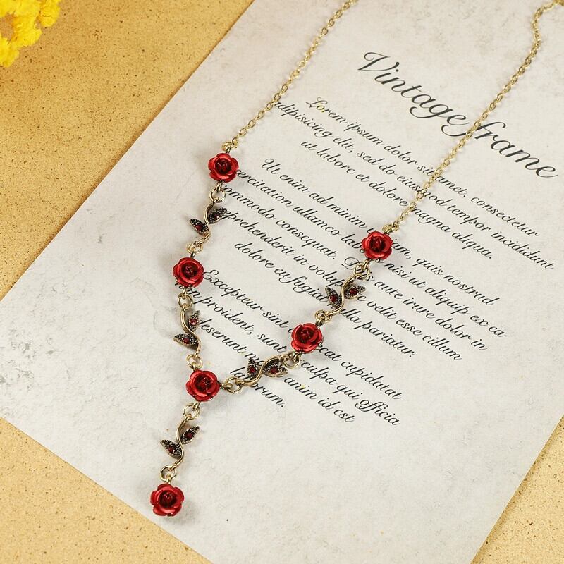 レトロ森ロマンチックな赤いバラのネックレスヨーロッパとアメリカのニッチフレンチフラワーペンダント鎖骨チェーンブレスレットイヤリング レッド レース 指輪 フラワーデザイン ヨーロピアン shipin10772412248