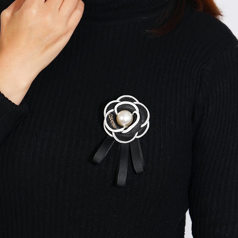 生地高級椿パールコサージュ蝶ネクタイ小さな香り衣類アクセサリー襟フラワーピンブローチ女性 リボン 真珠 フラワーデザイン shipin96529227314