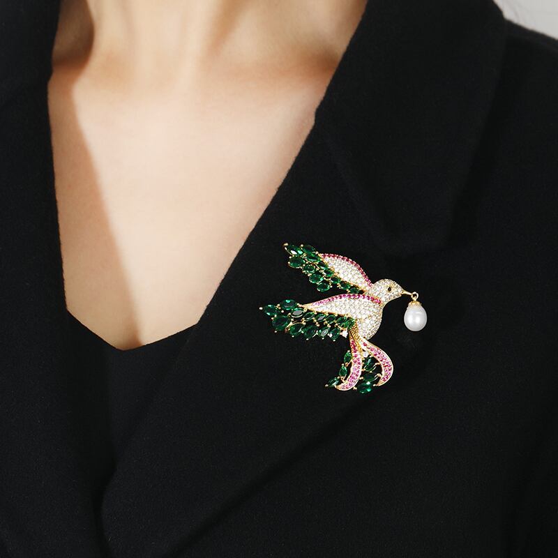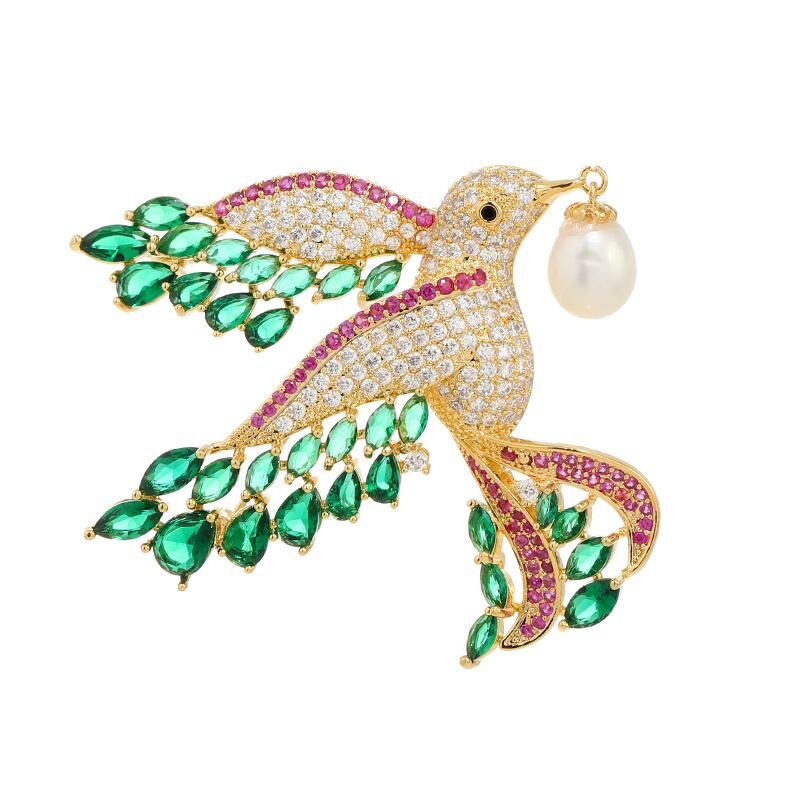 エメラルドハイエンド淡水真珠ブローチハイエンド高級ジルコンクリスタルコサージュスーツコートアクセサリーブローチ パール 翠玉 緑玉 shipin77678001337