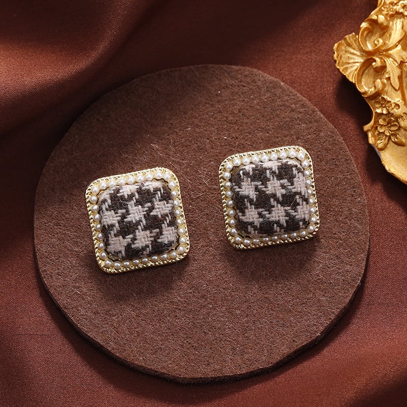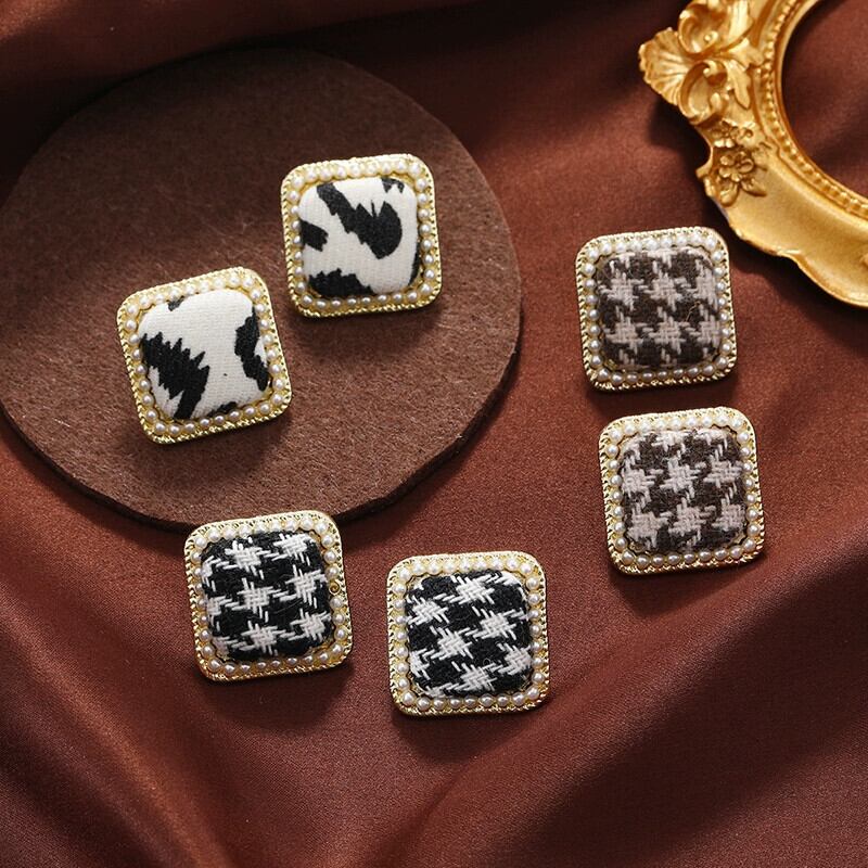 トレンディな千鳥格子生地黒と白のチェック柄スクエアイヤリング女性の秋と冬のレトロな気質ハイエンドイヤリングイヤリング ホワイト ブラック オータム 秋物 ウィンター 冬物 指輪 スクウェア shipin77743834536