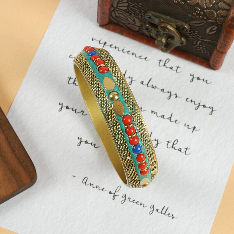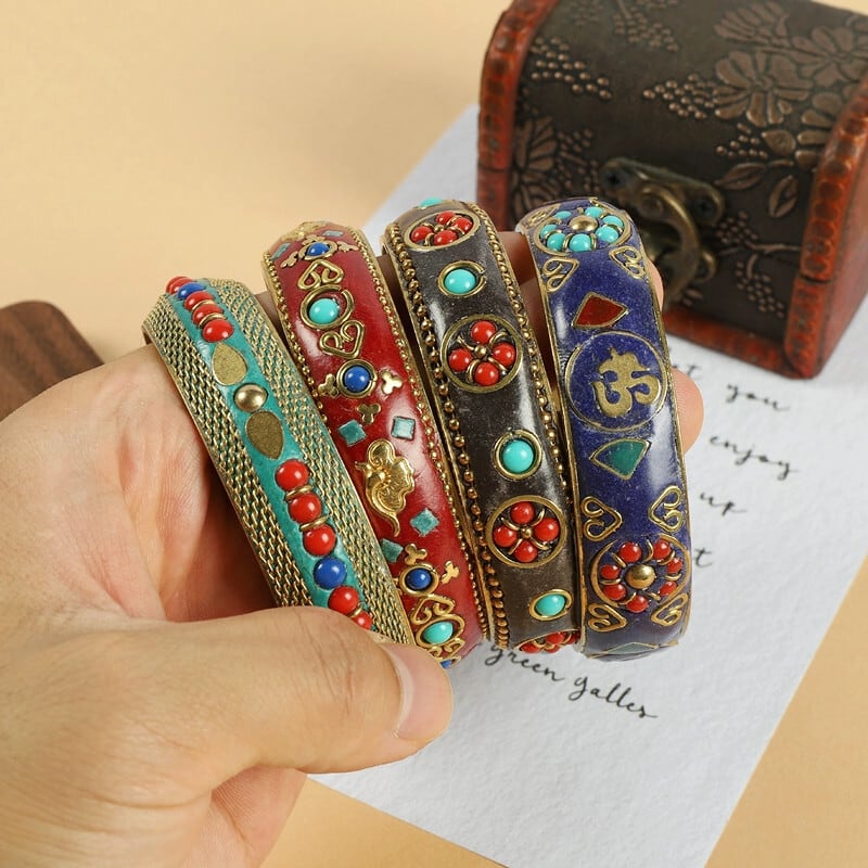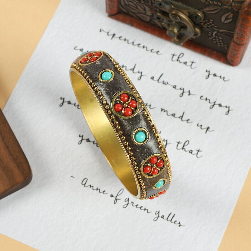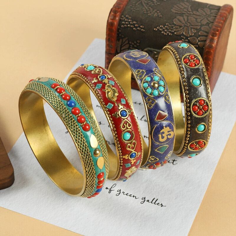 チベットネパールスタイルレトロ純銅ブレスレットターコイズ象嵌チベット手作りブレスレットエスニック風ブレスレット男性と女性のアクセサリー ピュア shipin60360252364