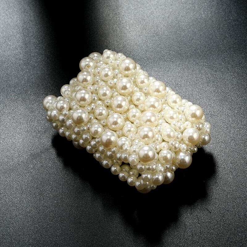 ヨーロッパとアメリカのレトロバロック模造真珠のブレスレット気質文学織り弾性ワイドブレスレット女性のブレスレット エラスティック 伸縮 パール ヨーロピアン shipin3138599381
