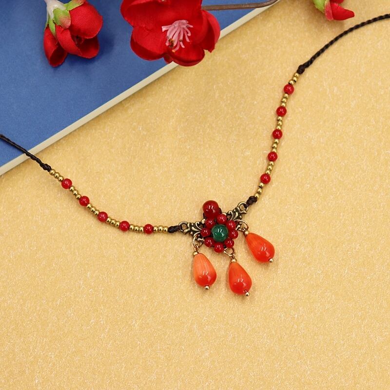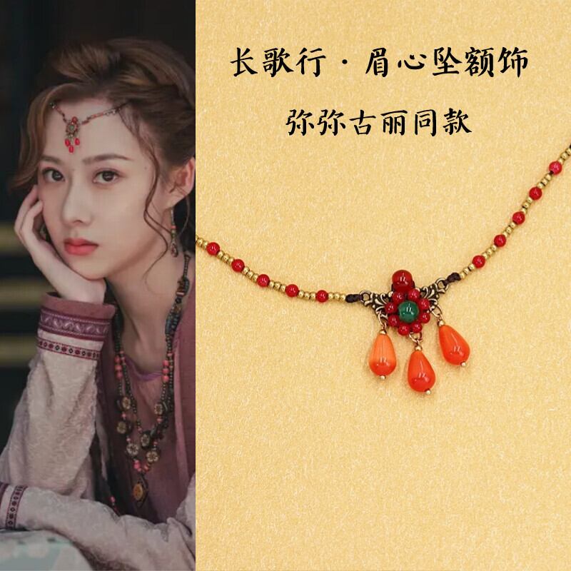 Changge Xingmi Miguli と同じスタイルの頭飾り赤い水滴眉ハートペンダントレトロエキゾチックな古代スタイルの漢服 ehead ジュエリー レッド shipin11909010082