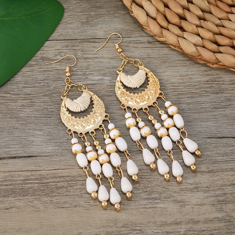 ボヘミアンエスニックスタイルグリーンテルイヤリング女性のレトロな長い気質イヤリング雲南休日ニッチイヤリング ロング 指輪 shipin13730304621