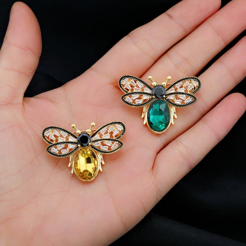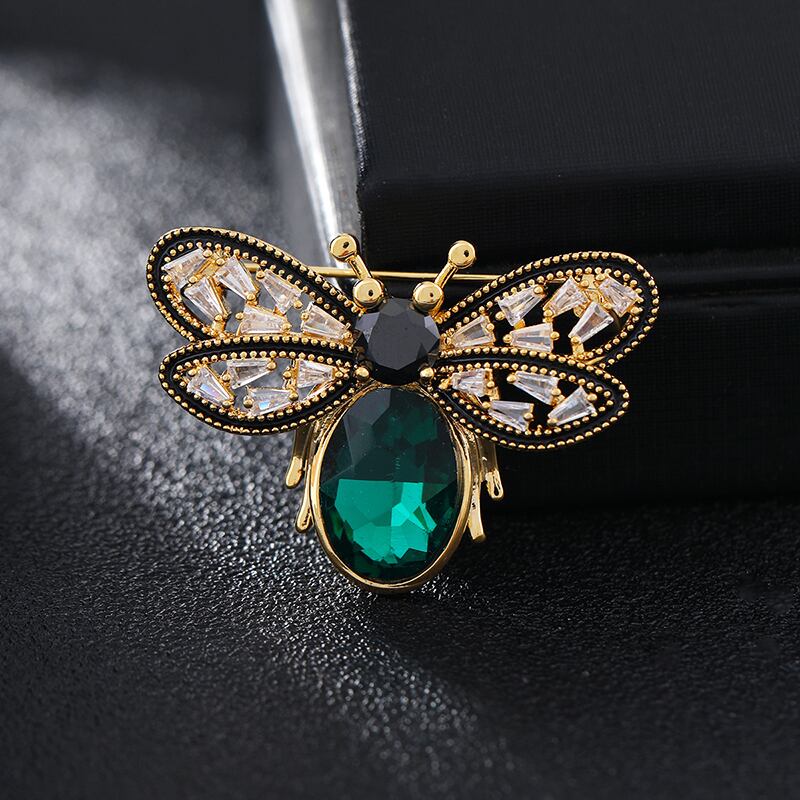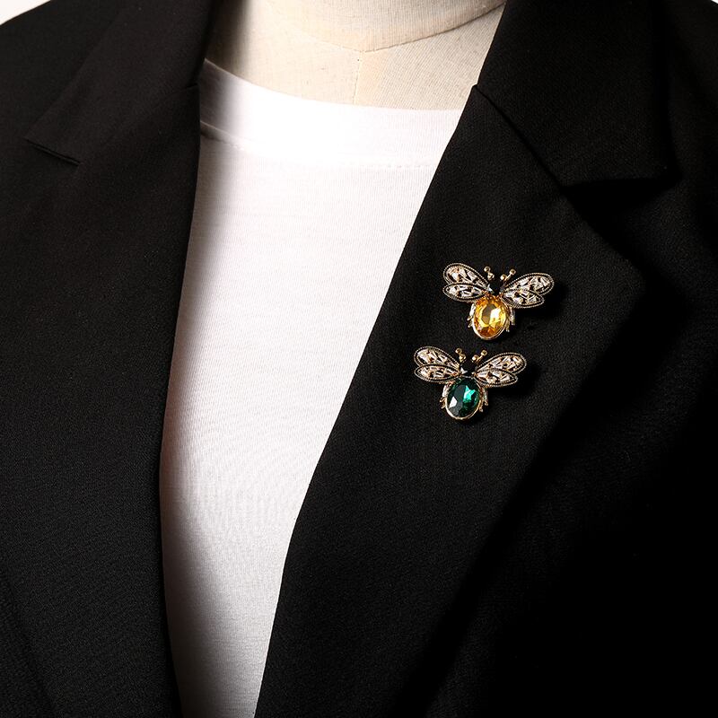 小さな香りレトロクリスタル蜂ブローチ女性らしさハイエンドシンプルなコサージュブローチライト高級スーツアクセサリー shipin98027585211