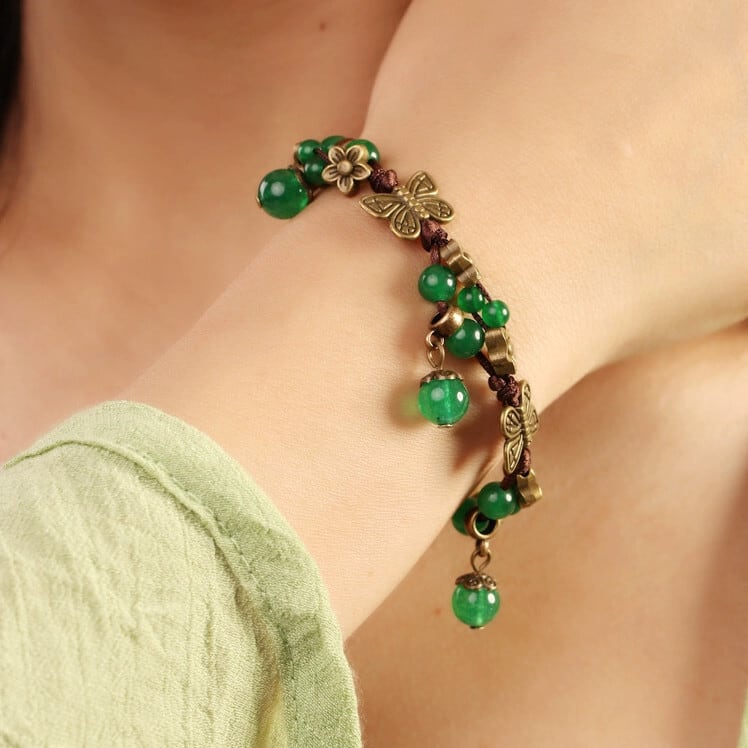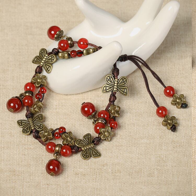 森エスニックスタイル織り瑪瑙ブレスレットレディースレトロボヘミアンバタフライフラワーテルペンダントアンクレット フラワーデザイン shipin55379897104